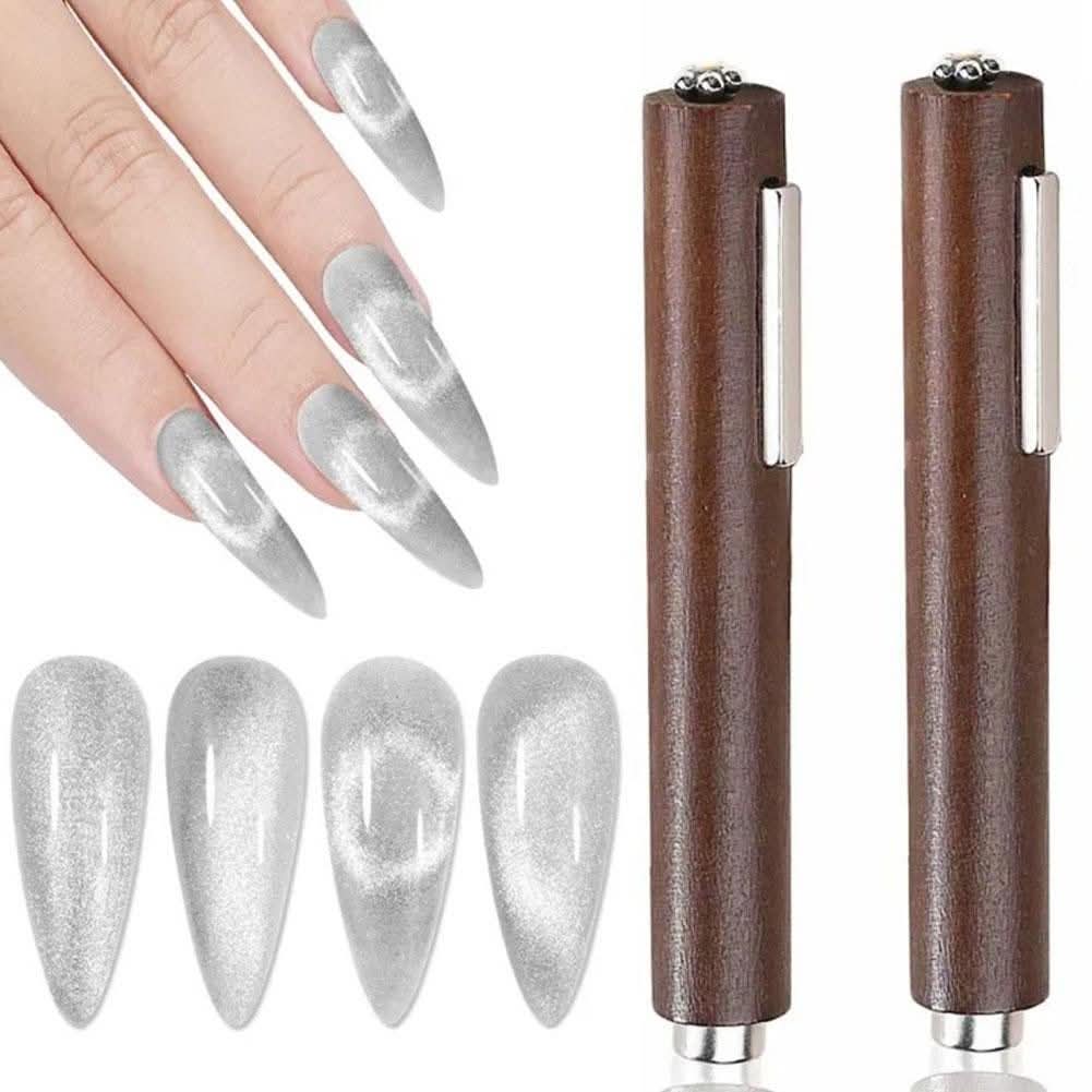 Features: 3-in-1 Design: Includes multiple magnetic shapes for different cat eye styles in one tool. Ultra Strong Magnetism: Quickly attracts magnetic polish for a clean, sharp, and vivid cat eye effect. Large Cylinder Head: Covers more nail area at once, saving time and effort. Professional Results: Perfect for both beginners and professional nail artists. Durable & Easy to Use: Lightweight, reusable, and suitable for hands and feet. Achieve salon-quality magnetic nail art at home in seconds!