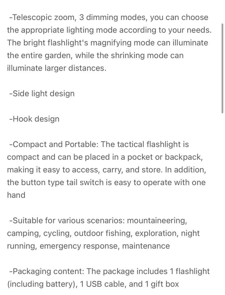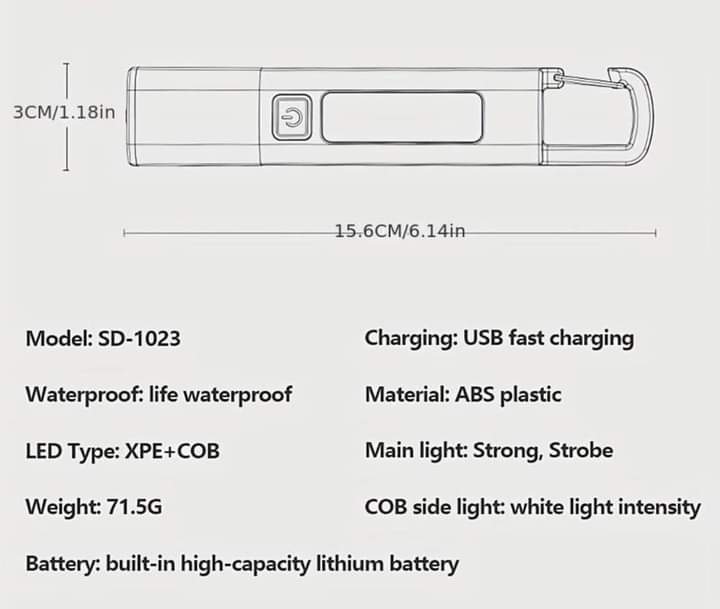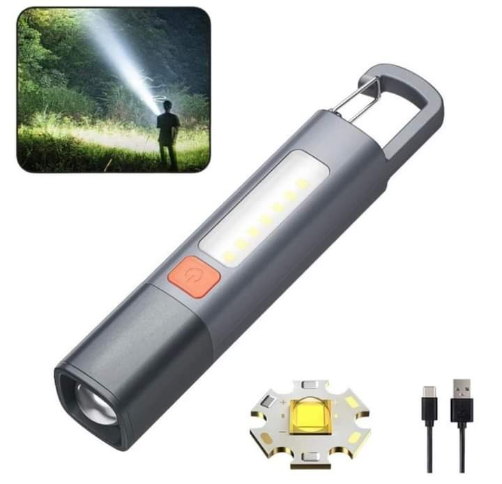 3 in 1 Waterproof Mini-LED Super Bright Strobe Light & Long Shot Camping Light with Hook USB Rechargeable Zoomable Flashlight COB