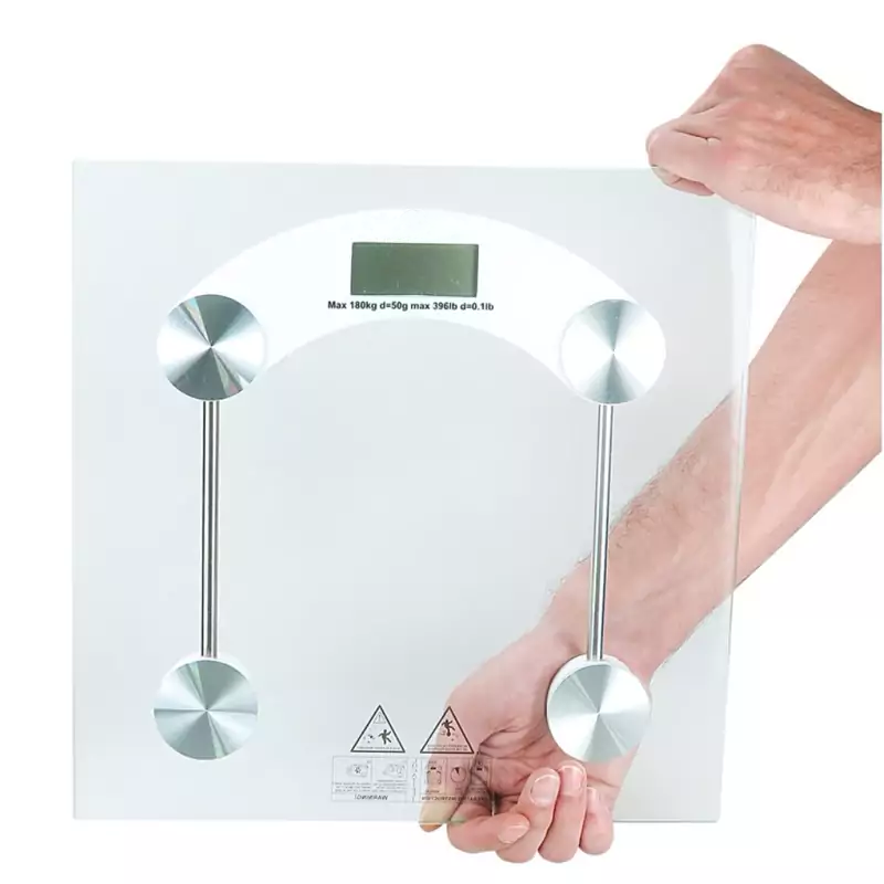 The professional LCD digital scale has a very high capacity of up to 150kg and with professional accuracy of0.1kg. This body health scale will be a great gift to your friends. Don´t hesitate about that. Buy it at once! Features Wide LCD screen display Main body use toughened glass engineering plastic as main material Automatically lock the reading when data is stable Low power consumption