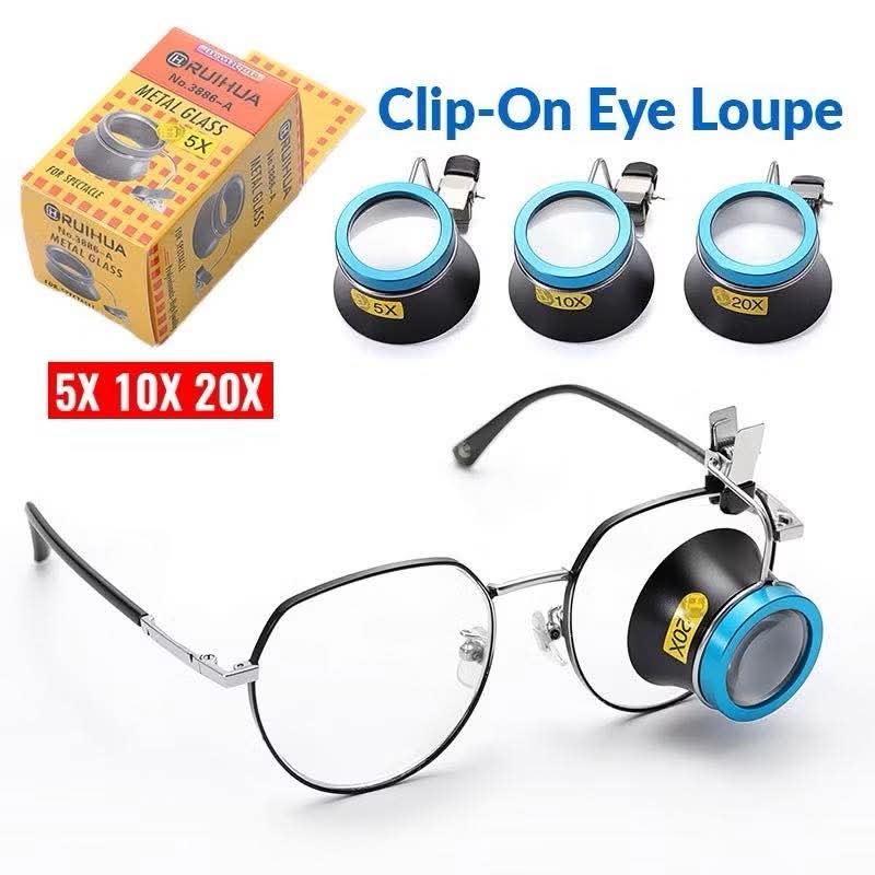 (5X, 10X, 20X) Clip-On Eye Loupe Magnifying Tool Set သည် နာရီပြုပြင်ရေး၊ လက်ဝတ်ရတနာ စစ်ဆေးခြင်း၊ အသေးစိတ်အလုပ်များကို တိကျသေချာစွာ မြင်နိုင်ရန် အထူးဒီဇိုင်းပြုလုပ်ထားသော Professional Magnifier Tool Set ဖြစ်ပါသည်။