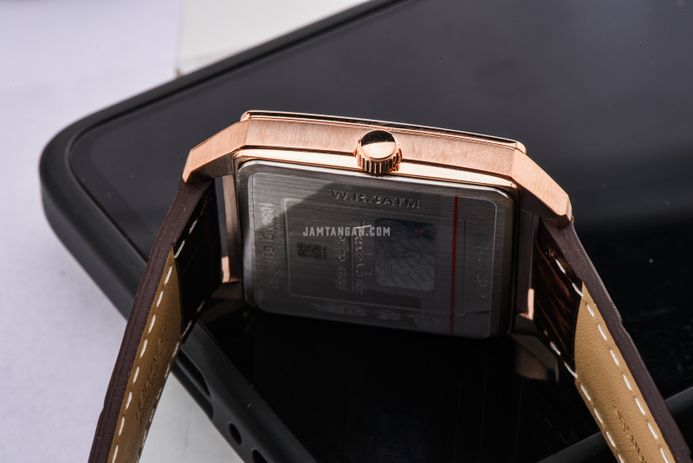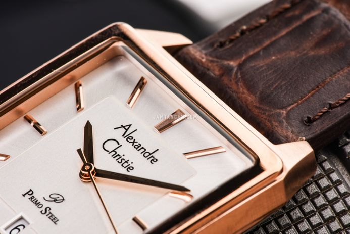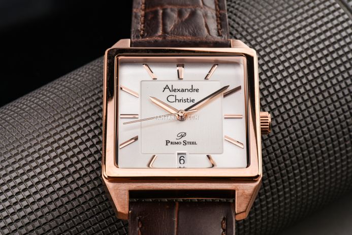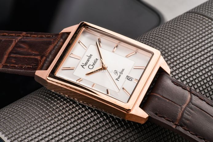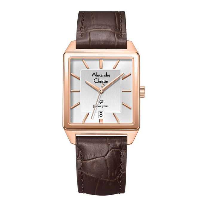 Alexandre Christie-AC 1038 MD LRGSL-Rose Gold-Brown Leather