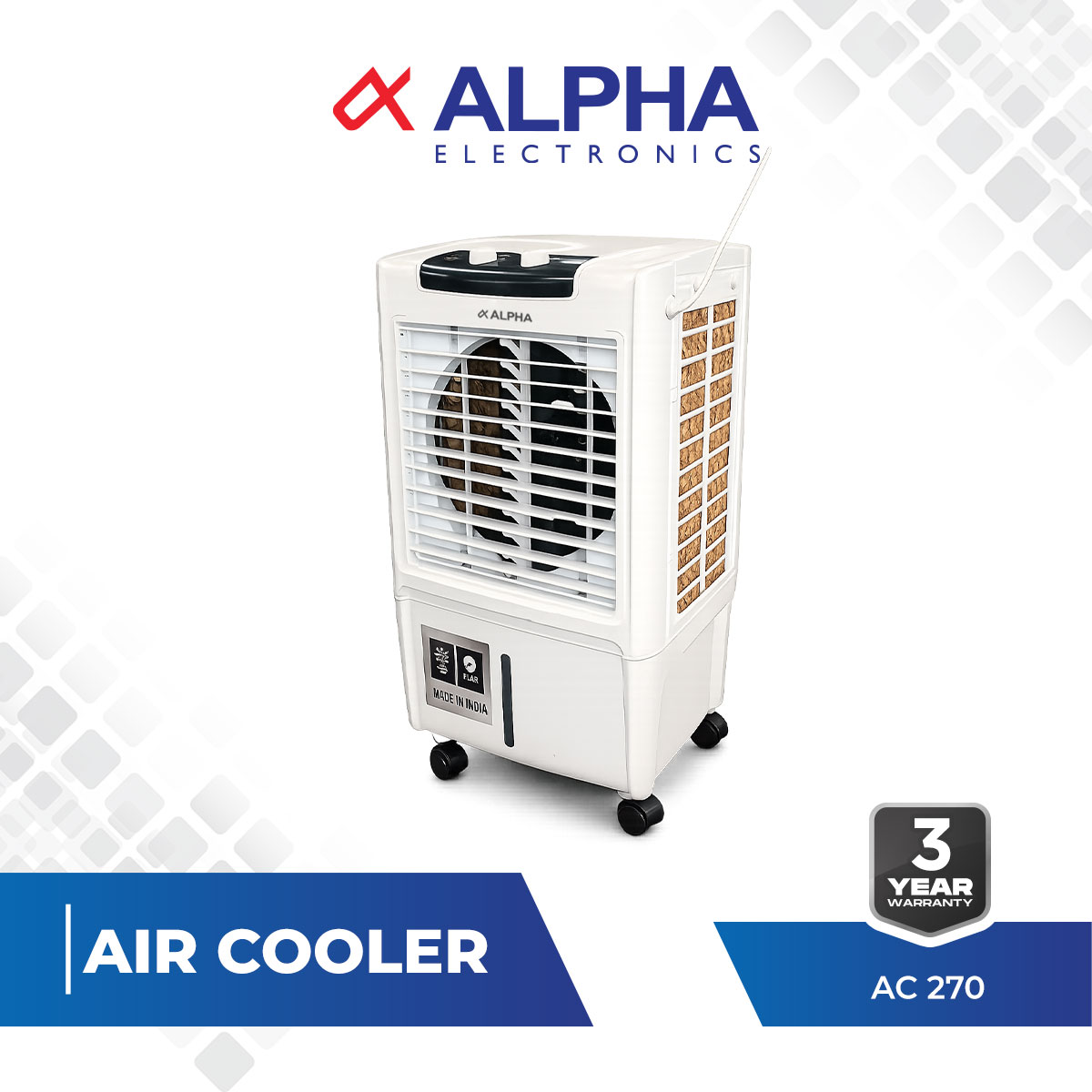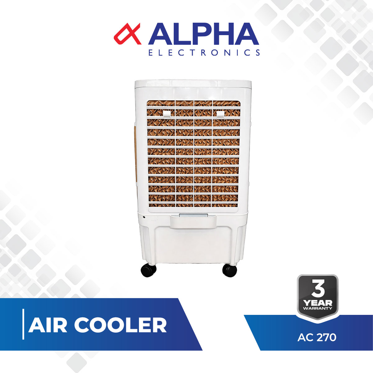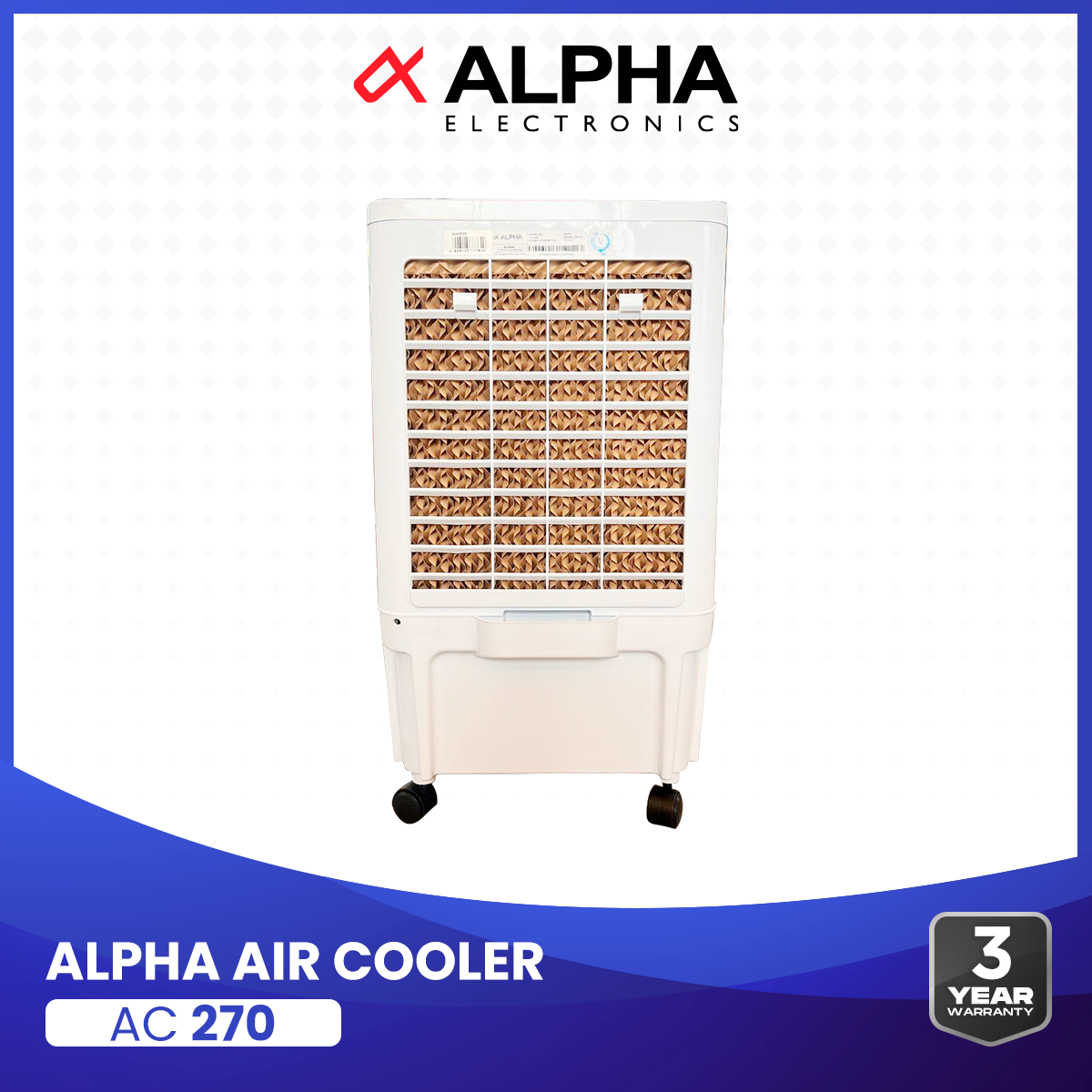 ALPHA AIR COOLER (AC-270) Voltage - 220/240 V , 50HzAC Power - 110W 27Liter Net. 6.4KG , Gross -8.6 KG 452x435x732 mm