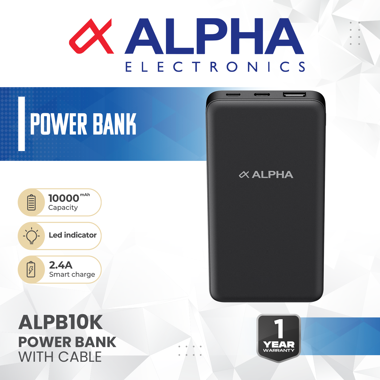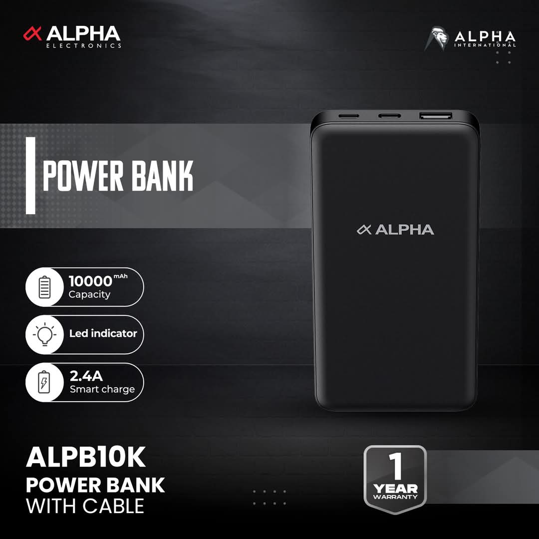 ALPB 10K - With LED Indicator - Capacity 10000 mAh/3.7V/37Wh - Input ; Micro - Size 70*142*15mm - Weight - 234g+5g - 2.4A Smart Charge - 1 Year Warranty
