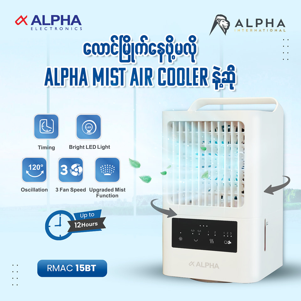 Alpha Rechargeable Air Cooler (RMAC15BT) RMAC 15 BT 5 V DC 10 W 3.7 V 5000mAh Lithium Battery 800ml 5.5 hours/ high speed