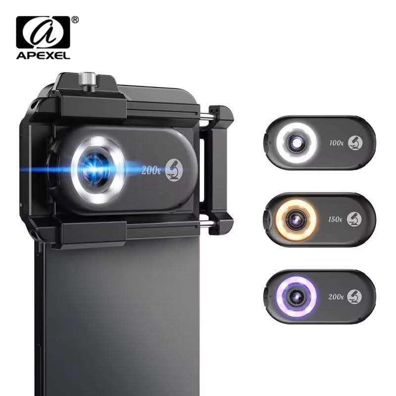 APEXEL New Phone Micro 5 (200X) Microscope Lens Mobile Phone Lens 3 in 1 Magnification MacroLens with LED Smartphone Accessories