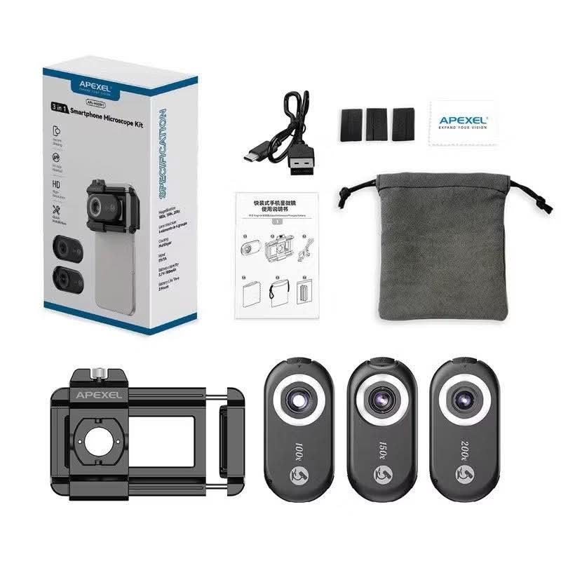 သင့်ဖုန်းကို သန့်ရှင်းမှုမြင့်မားတဲ့ မိုက်ခရိုစကုပ်တစ်လုံးအဖြစ်ပြောင်းလဲလိုက်ပါ။ APEXEL Micro 5 သည် 100X / 150X / 200X အထိ zoom များဖြင့် ဖုံးကင်မရာအတွက် 3-in-1 မိုက်ခရိုလင်းစ်တစ်ခုဖြစ်သည်။ ကျောင်းသားများ၊ ဓာတ်ခွဲခန်းသုံးသူများ၊ beauty technicians များအတွက် အထူးသင့်လျော်ပြီး အရေပြားအရေးအသား၊ အပင်အစိတ်အပိုင်း၊ ပိုးမွှား၊ အထည်ထည်သားအတွင်းဖွဲ့စည်းမှုများကို HD ဖြင့်မြင်နိုင်ပါတယ်။