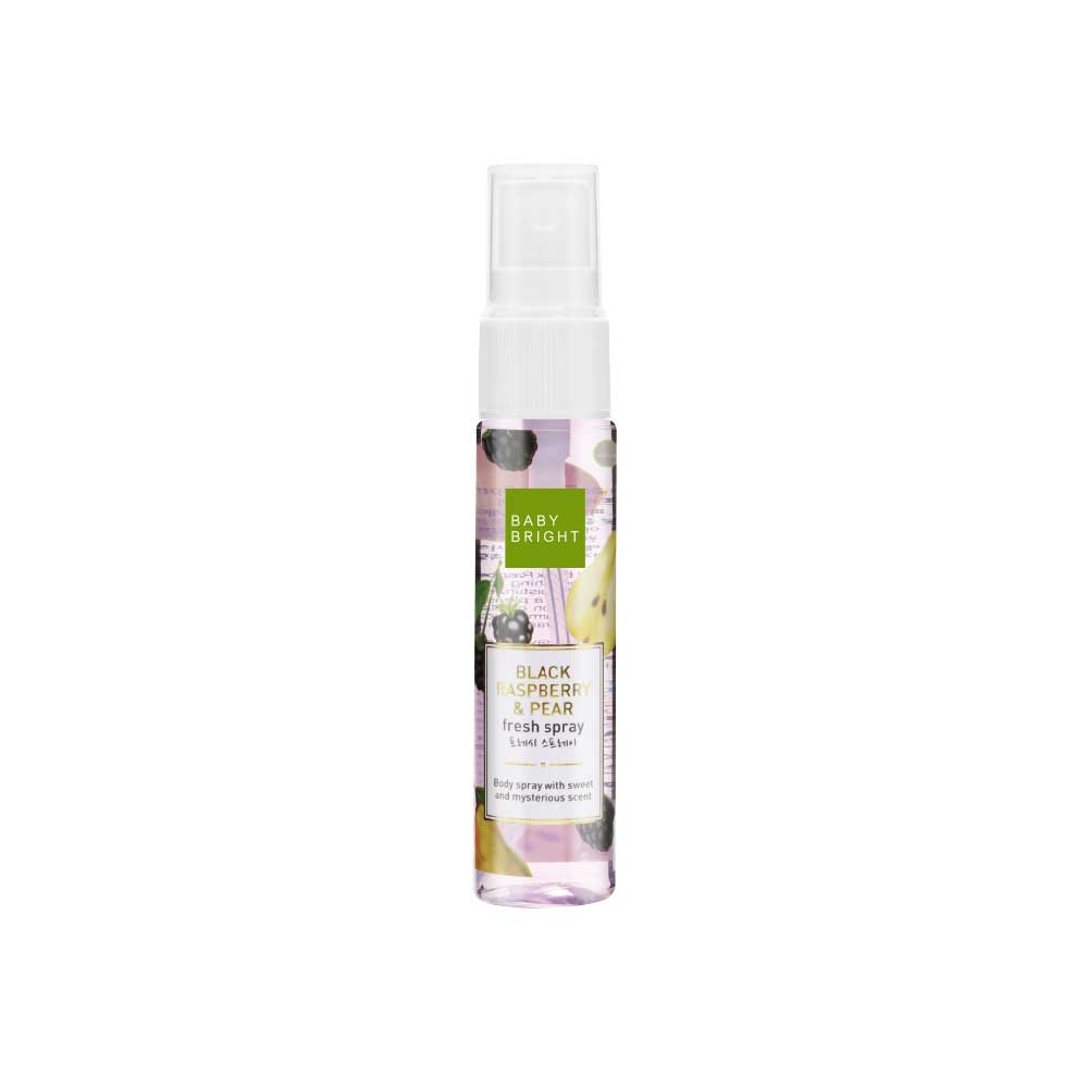 Black Raspberry amp; Pear Fresh Spray : Moisturize the skin with Baby Bright Black Raspberry amp; Pear Fresh Spray, the skin nourishing spray that contains the combination of moisturizer to help hydrate the skin. It also offers a pleasant scent from the perfect combination of Black Raspberry and Pear. Achieve the charming scent that is filled confidence, attractiveness and mystery.