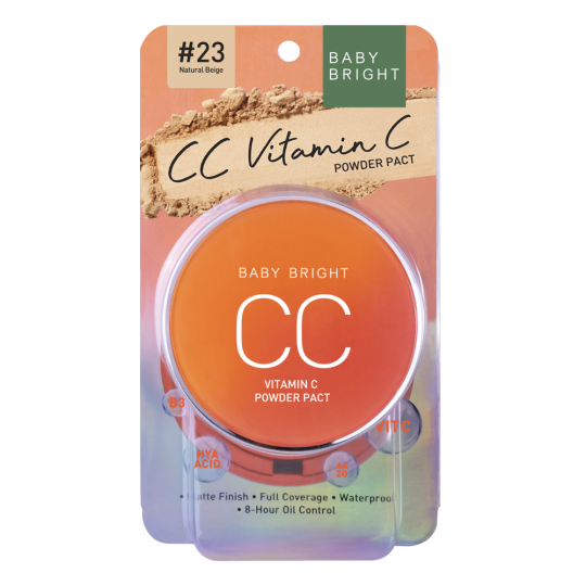 Unveil an unmatched glow with Baby Bright CC Vitamin C Powder Pact that offers full-coverage and matte formula with extra soft, smooth, and blendable finish that doesn't feel heavy on your skin. Rich in vitamin B3, vitamin C, Ascorbyl Glucoside, Hyaluronic acid to reduce dullness, spots while toning up complexion and shrinking pores, this powder features Anti-Pollution innovation that shields against environmental aggressors such as dust and pollutant, including preventing breakouts. It also helps revive dryness for healthy look and control sebum for up to 8 hours while being waterproof and sweat-proof to keep your face looking matte, fresh, and instantly bright without turning darker during the day!