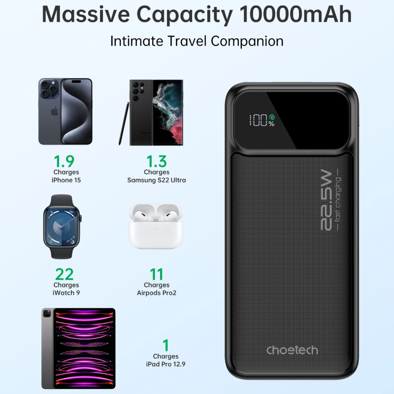 Choetech 10000mAh PD22.5W Power Bank (B728) Black