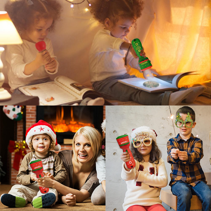 Christmas flashlight projector for children, adopts Christmas element design to make the color more beautiful and fashionable. Buy it for Christmas gift and lead your kids to explore the magical Christmas world.