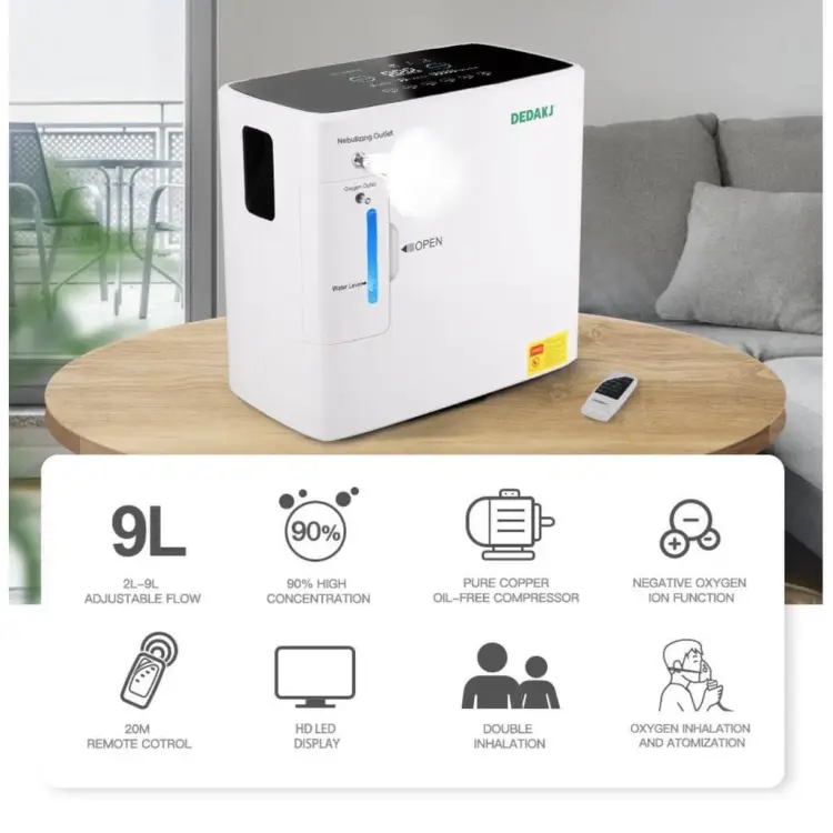 Germany Brand ဖြစ်ပြီး China Factory မှ ထုတ်လုပ်ကာ Singapore မှ တင်သွင်း ဖြန့်ချီပါသည်။ 1 Year Warranty ရနိုင်မည်ဖြစ်ပြီး နောက်ဆုံး model ဖြစ်သည်နှင့်အညီ လွန်စွာ ညက်ညောသော အသံ, ရှင်းလင်း ကျယ်ပြန့်သော Display Screen, လွယ်ကူ ရှင်းလင်းသော Touch Screen ခလုတ်, 9L ထိ ရနိုင်သော Oxygen Flow, 93% ထိ သန့်စင်သည့် Oxygen Purity, 20 meters အကွာအဝေးမှ အထိ ထိန်းချုပ်နိုင်သည့် Remote Control, လူ ၂ ယောက် တစ်ပြိုင်တည်း အသုံးပြုနိုင်သည့် Flow နှင့် Connector(Accessories အားလုံး Package တွင် ပါဝင်ပြီး), ပန်းနာ၊ ရင်ကြပ်သူများအတွက် သီးသန့် ထပ်မံ ဝယ်ယူရန် မလိုတော့သည့် Nebulizer Function Outlet(စက်အတော်များများတွင် Nebulizer Function မပါဝင်ပါ။), ၃ နာရီ(180 minutes) အထိ အချိန်ကန့်သတ်ပြီး ထိန်းချုပ်နိုင်သည့် Auto Cut-Off Timer, Oxygen ကို 2L မှ 9L အထိ မိမိ နှစ်သက် သည့် ပမာဏကို ချိန်ညှိနိုင်သည့် Air Flow Control ပါဝင်ပါသည်။ Portable Type ဖြစ်သဖြင့် သယ်ဆောင်ရန် လွယ်ကူပြီး Power Inverter ဖြင့် ခရီးသွားရင်း ကားပေါ်တွင်လည်း သယ်ယူအသုံးပြုနိုင်ပါသည်။ Fast Heat Dissipation Function ပါဝင်သောကြောင့် ခဏ ရပ်နားပြီး အသုံးပြုရန် မလိုပဲ 24 Hours ဆက်တိုက် အသုံးပြုနိုင်ပါသည်။