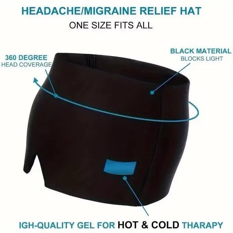 Double Layer Migraine Relief Gel Cap/Headache Relief Hat/Stress Relief Eye Mask/Cold & Hot Compress Ice Cap(Black)