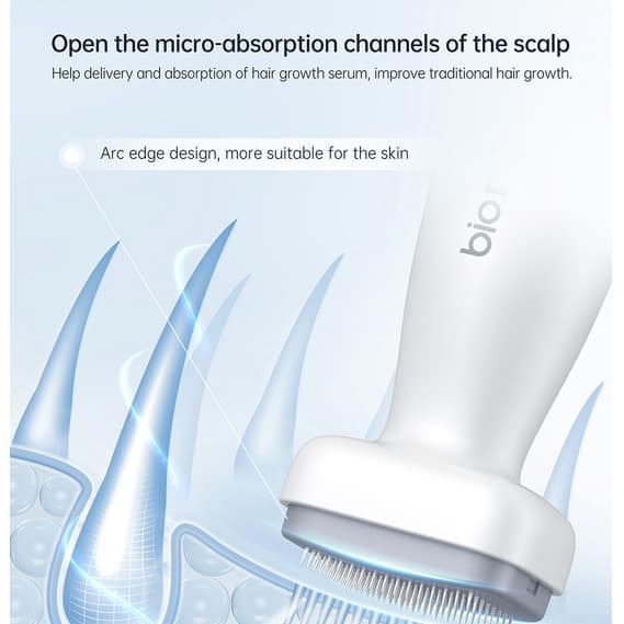 Bioneedle derma stamp 120 punctures the skin and creates thousands of microchannels in ashort period of time. Used in conjunction with skin care products and hair growthessence products, the essence and active ingredients are delivered to the skin to enhance absorption, awaken hair folliclesand promote hair growth.