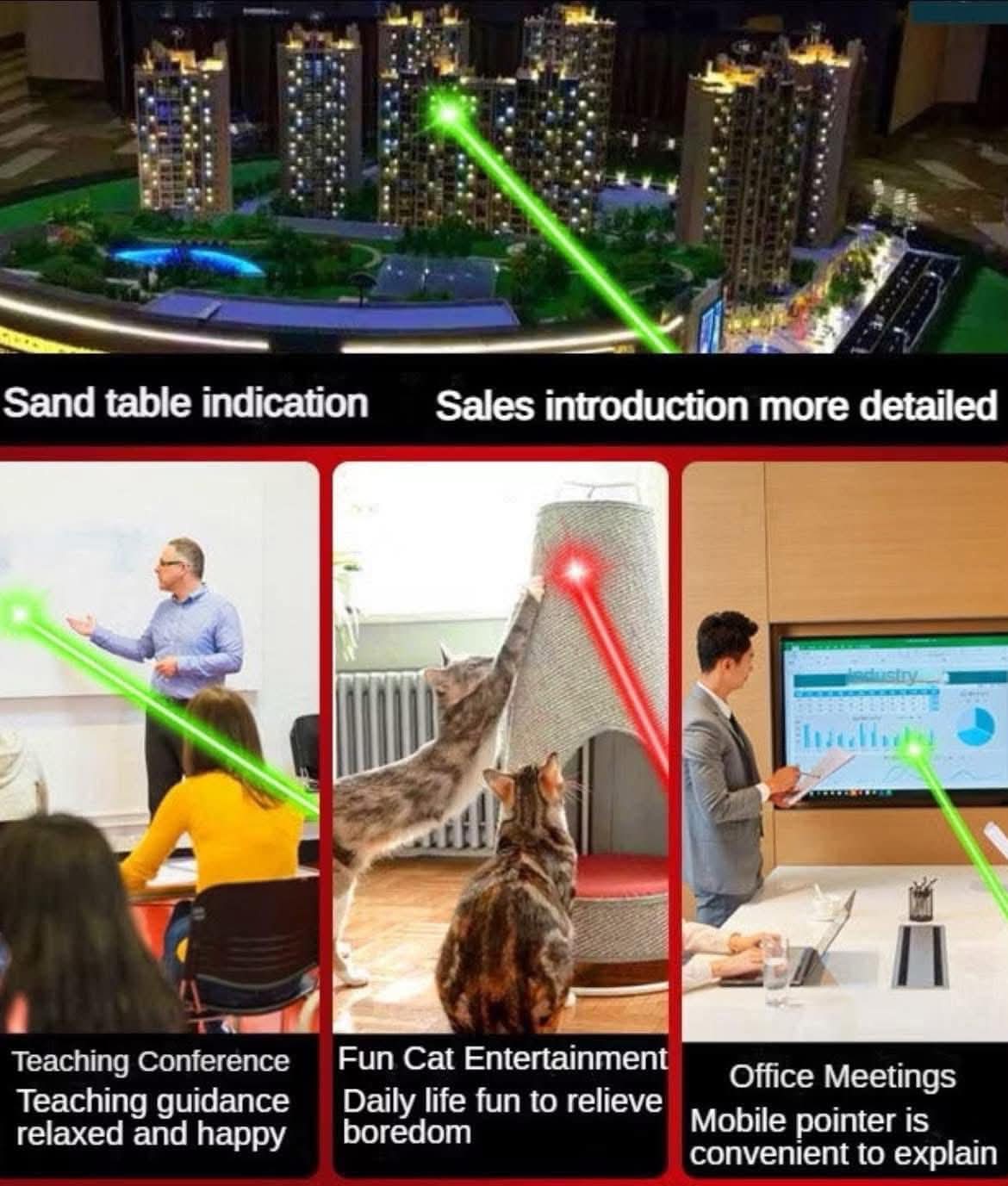 ရုံးချိန်အစည်းအဝေးများ၊ ကျောင်းသင်ခန်းစာများတွင် အသုံးပြုနိုင်သည့် အကောင်းဆုံး လက်ထောက်ကိရိယာတစ်ခုဖြစ်ပါတယ်။ အစိမ်းရောင်လေဆာဖြင့် အသုံးပြုနိုင်သလို အနီရောင်ဖြင့် လည်း လွယ်ကူစွာ အသုံးပြုနိုင်ပါတယ်။