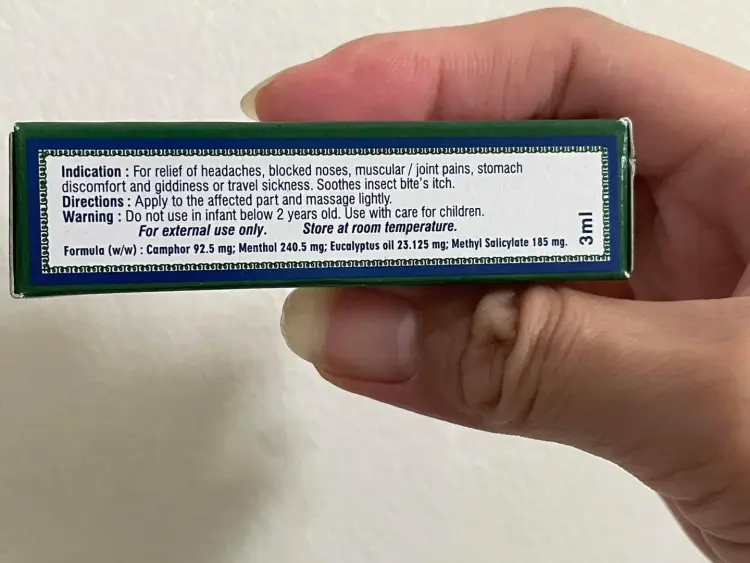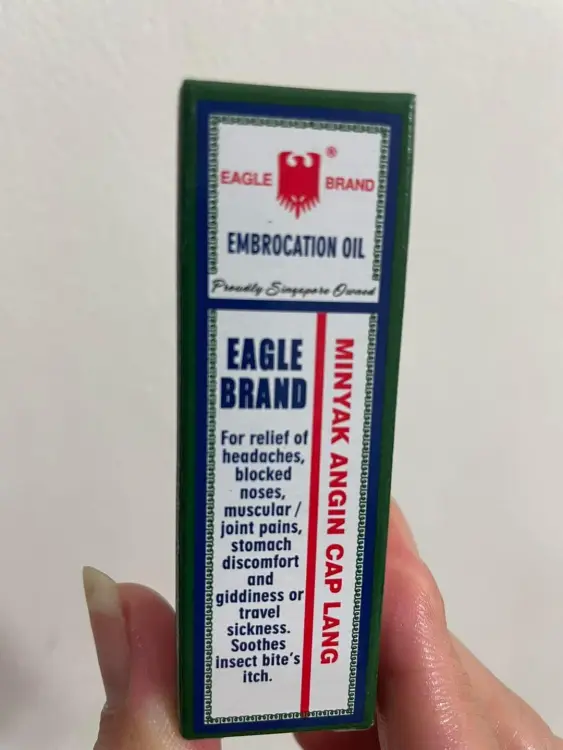 Eagle Brand Embrocation Oil- ခေါင်းကိုက်ခြင်း နှင့် ကြွက်သားနာကျင်ခြင်း သက်သာစေခြင်း (3ml)Eagle အမှတ်တံဆိပ်သော့ချက်အချက်အလက်Eagle Brand Embrocation Oil ကို ခေါင်းကိုက်ခြင်း၊ နှာခေါင်းပိတ်ခြင်း၊ ကြွက်သားအဆစ်များ နာကျင်ခြင်း၊ အစာအိမ်မအီမသာဖြစ်ခြင်း နှင့် ဝမ်းလျှောခြင်း သို့မဟုတ် ခရီးသွားရောဂါများ သက်သာစေရန် အသုံးပြုပါသည်။ အင်းဆက်ပိုးမွှားကိုက်ခြင်းကို သက်သာစေသည်။ Eucalyptus၊ Menthol နှင့် Camphor တို့ပါဝင်ပြီး မွှေးပျံ့သောရနံ့ရှိသည်။ နှာခေါင်းအောက်ကို လိမ်းပြီးရင် လေကို ချက်ချင်းရနိုင်သလို ပိုပြီးလွတ်လပ်စွာ ရှူရှိုက်ရပြီး မြန်မြန်သက်သာလာစေပါတယ်။ ၎င်းသည် အသက်ရှူလမ်းကြောင်းအပေါ် အပြုသဘောဆောင်သော သက်ရောက်မှုရှိသည်။ Eagle Embrocation Oil သည် နဖူးနှင့် ဘုရားကျောင်းများကို လိမ်းပေးခြင်းဖြင့် ဦးခေါင်းကို သက်သာစေသည်။ Eagle Brand Oil ကို တောင့်တင်းပြီး တောင့်တင်းသော ကြွက်သားများကို ပြေလျော့စေပြီး ပျော့ပြောင်းစေရန်လည်း အသုံးပြုပါသည်။နိုင်ငံ/ မူရင်းနေရာ- စင်ကာပူ