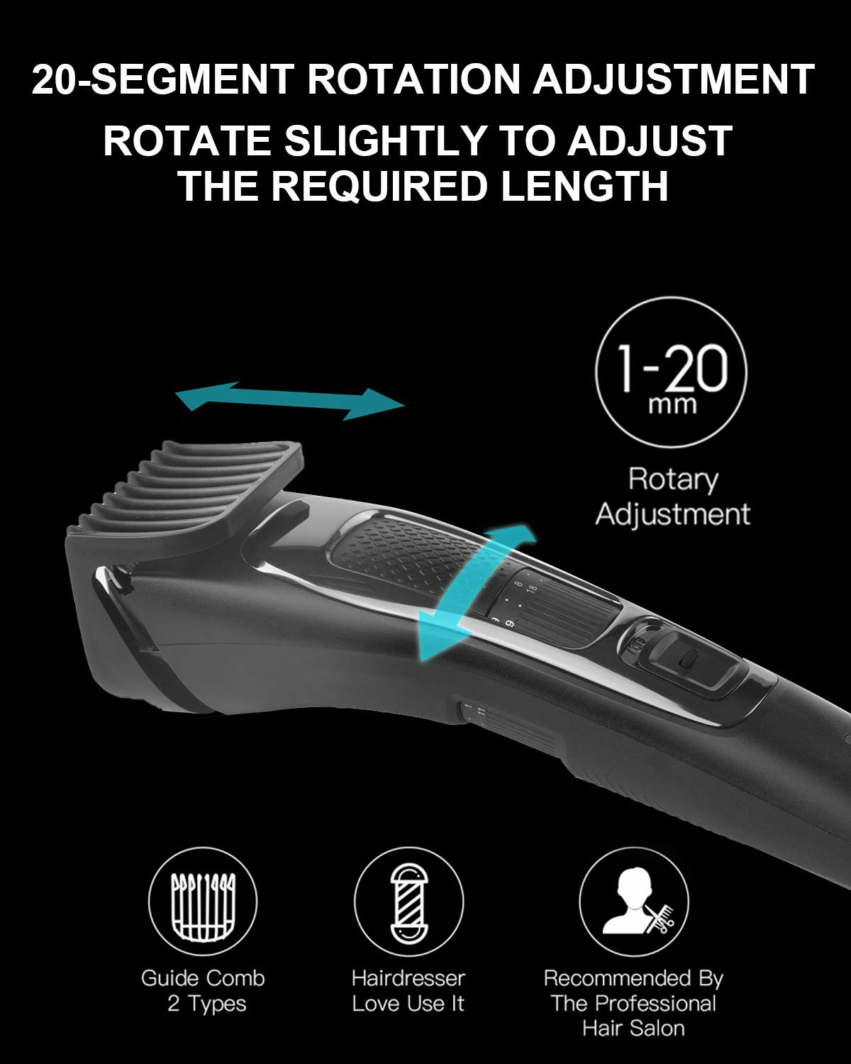 အမျိုးသားများအတွက် ဆံပင်ညှပ်စက်ကို အသုံးပြု၍ rotary guide comb ဒီဇိုင်း၊ ချိန်ညှိနိုင်သော အလျားအကွာအဝေး 1-20mm၊ ဖြည်းညှင်းစွာ အလှည့်အပြောင်းသည် တိုက်ရိုက်ဖြတ်တောက်ခြင်း၏ အရှည်ကို ချိန်ညှိနိုင်ပြီး လည်ပတ်ရလွယ်ကူပြီး အတွေ့အကြုံမရှိသေးသူများလည်း အလွယ်တကူ အသုံးပြုနိုင်ပါသည်။