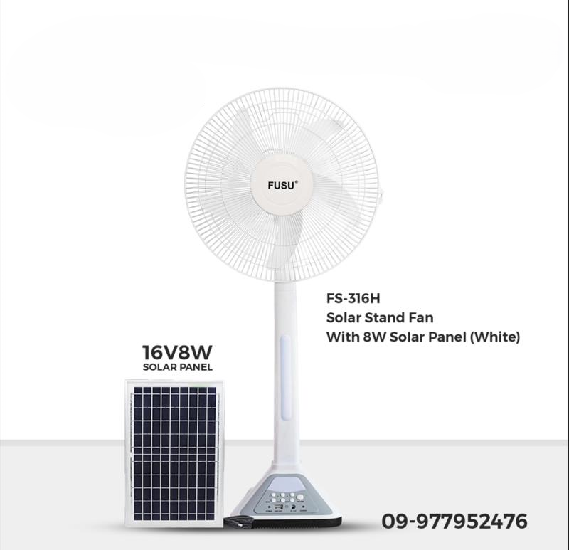 FS-316H Solar Stand Fan With 8W Solar Panel (White)