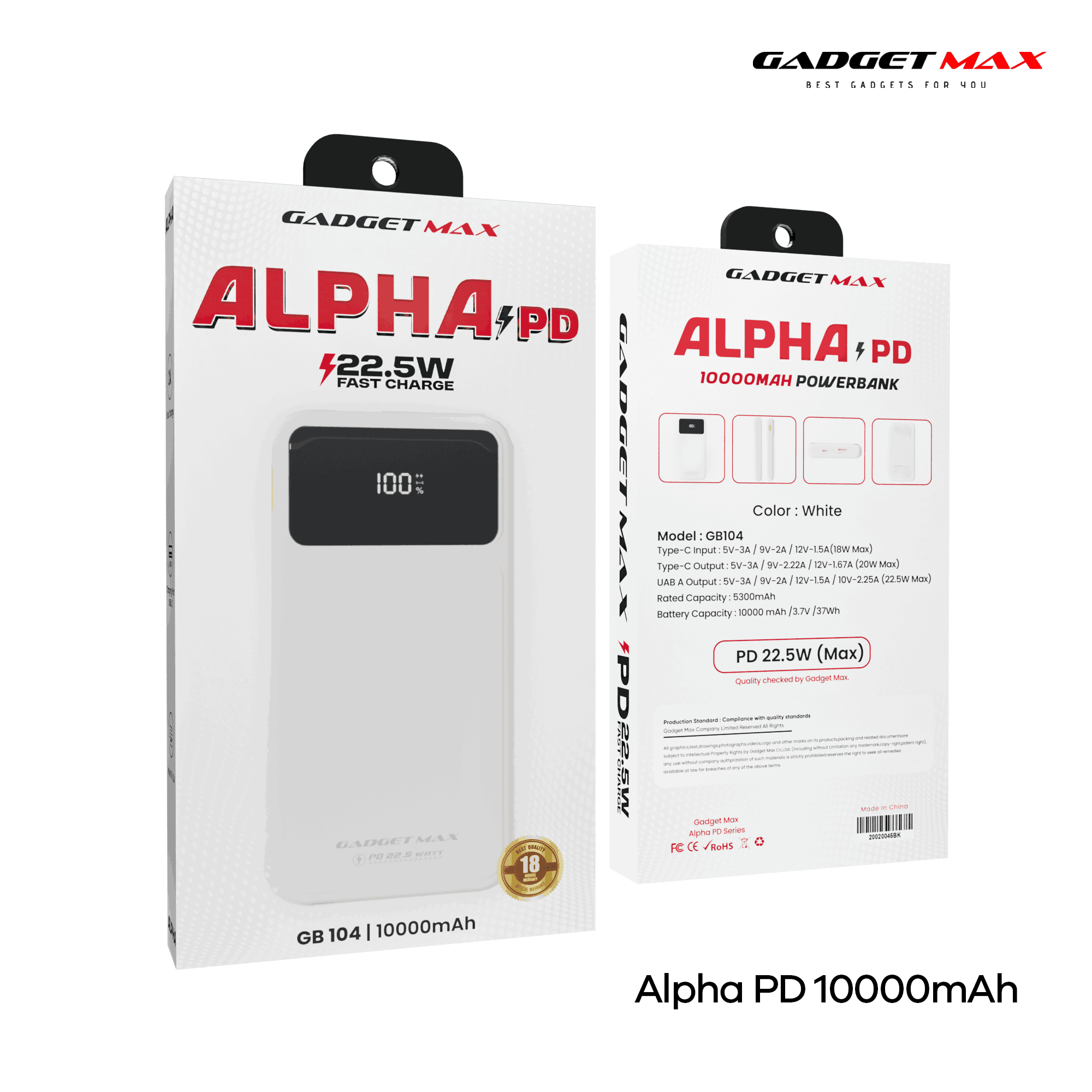 GADGET MAX - GB104 Alpha PD 10000mAh PD+QC Fast Charging Digital Power Bank ( 20W+22.5W )