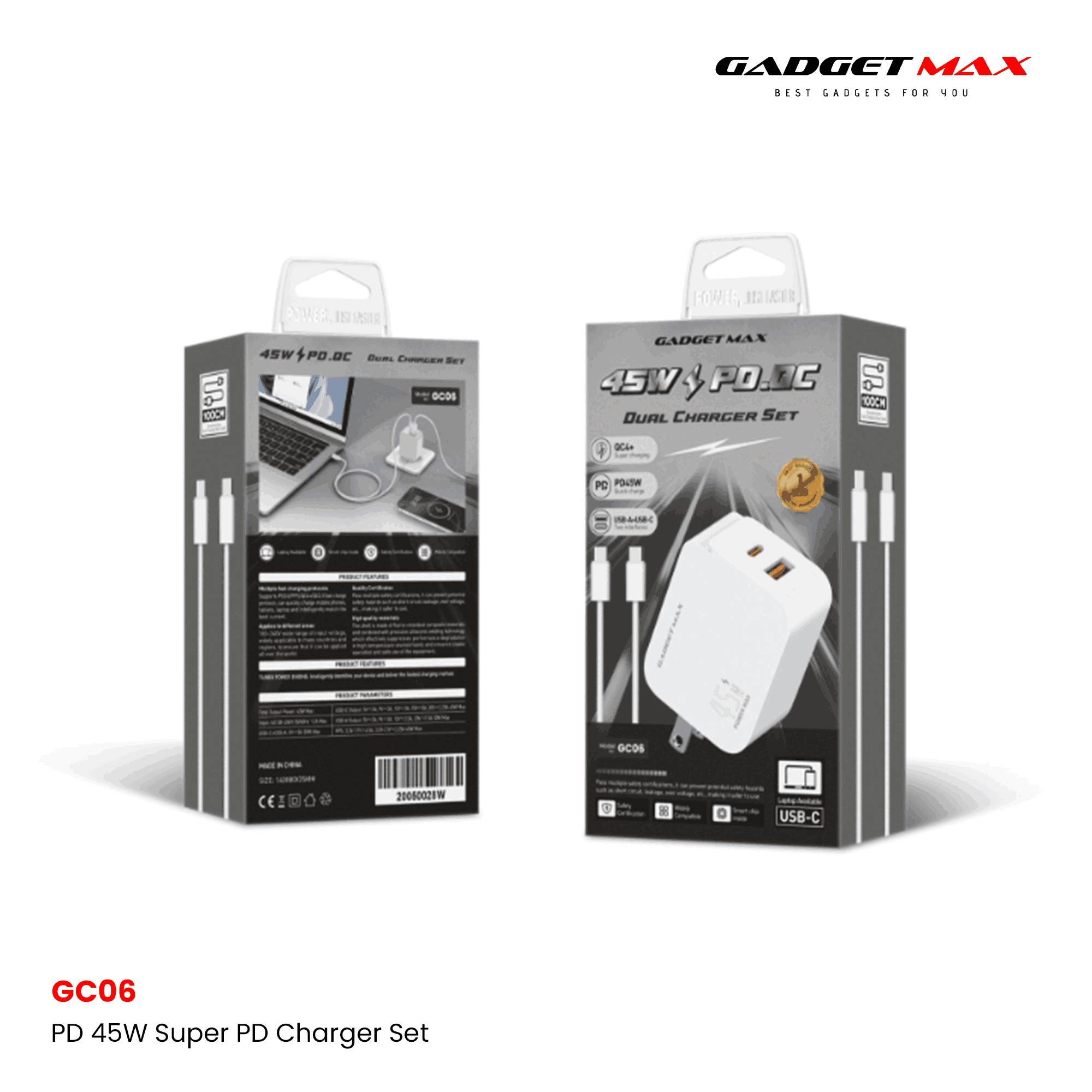 - Type-C Output (Single Port): 5V-3A, 9V-3A, 12V-3A, 15V-3A, 20V-2.25A (45W Max)