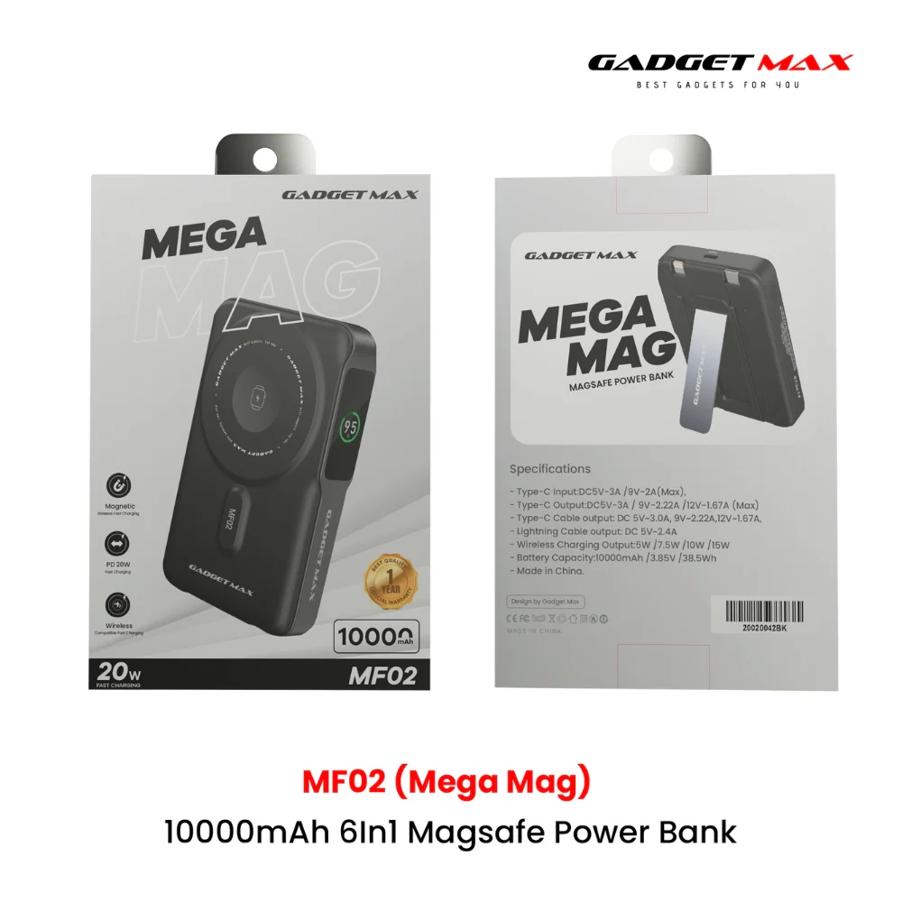 GADGET MAX - MF02 10000mAh Mega Mag 6 In 1 Magnetic Charging Power Bank