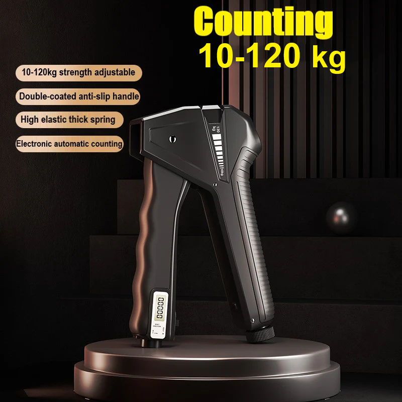 Enhance your grip and strengthen your fingers with the adjustable Grip Strength Trainer. Engineered with an anti-pinch feature and easy-to-grip materal, this trainer allows you to track progress and improve finger dexterity effectively. Elevate your grip strength with our trainer, which offrs a resistance range from 10KG to 120KG. Adjustable levels cater to diverse fitness needs and goals, catering to beginners and pros alike. Designed to conform to your hand's natural shape, our Grip Strength Trainer features wrap-around rubberized double handles for an effortless exercise experience. on enhancing your grip strength and performance with ease.