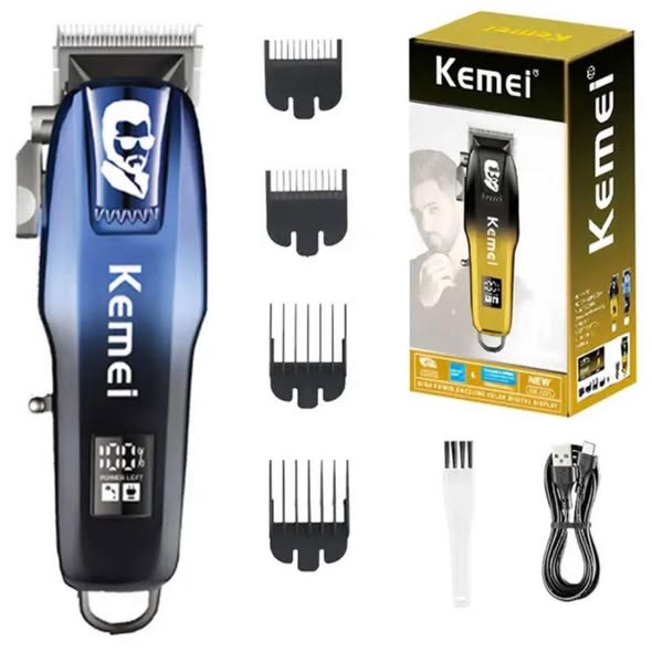 Kemei Professional Cordless Hair Clipper & Beard Trimmer – LCD Display, USB Rechargeable(Blue)