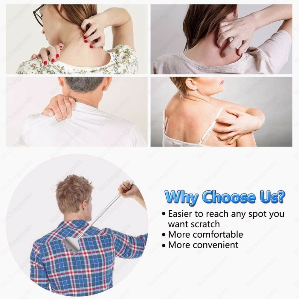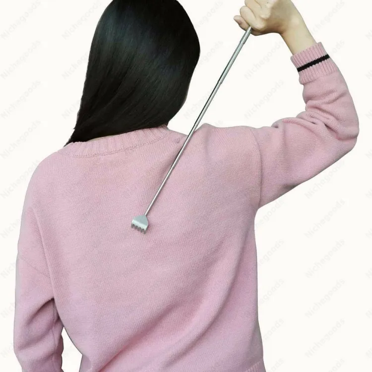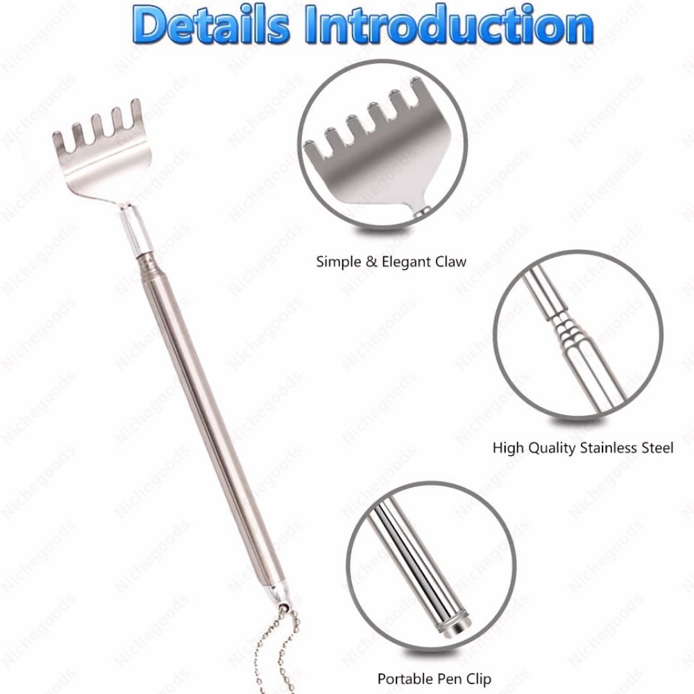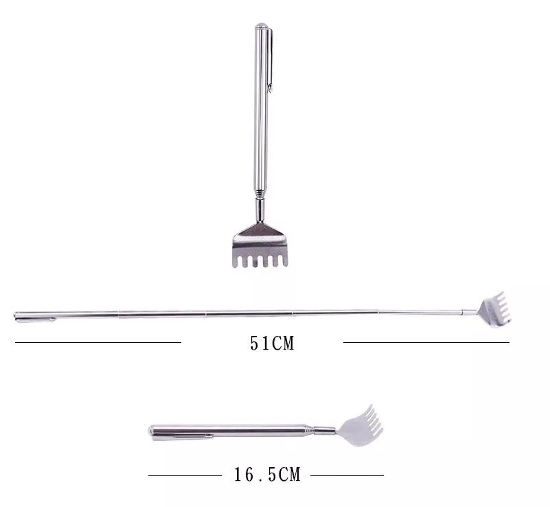 BACK SCRATCHER‣ The best back scratcher & massagers, you'll find, Stainless steel back scratcher with telescoping handle, (16cm) retracted, (50cm) fully extended,the claw size (3.5cm)WHY CHOOSE IT‣ Almost no one reaches the back or anywhere else, such as bursitis, arthritis, your elbows, shoulders or back. Our retractable back scraper helps you reach hard-to-reach places. It can help you eliminate the pressure, anxiety, and boredom. It is a useful yet super fun gadget.STURDY MATERIAL‣ Back scratcher claw is made from 100% stainless steel - metal that will never rust, bend, break, or deteriorate with age. The handle is fits perfectly in your hand.(The pocket clip is very good design which help you to carry it)