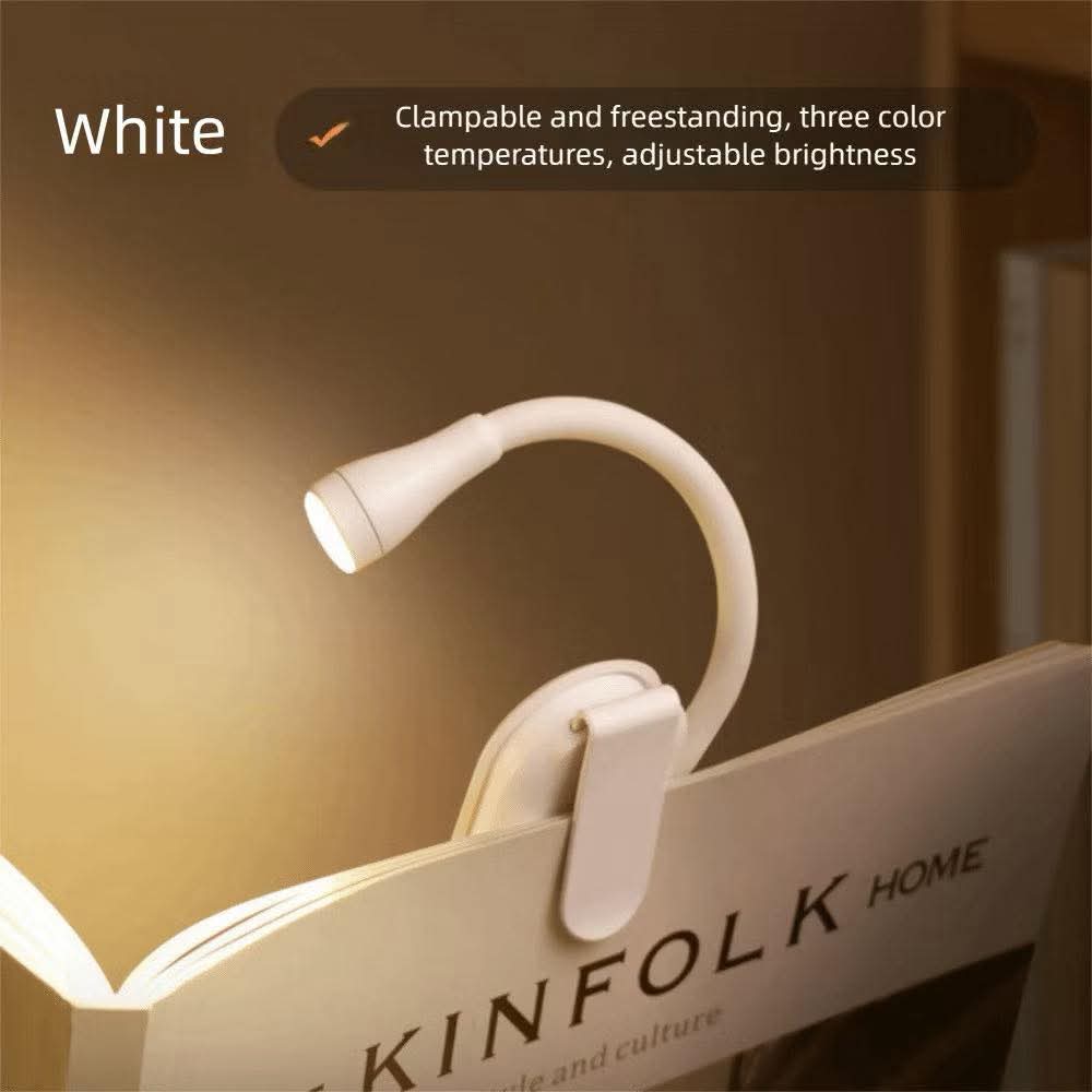 LED Book Light, Rechargeable Mini Size Reading Light, Flip Design Dimmable 360° Adjustable 3 Color Eye-care Light Travel Use (White)