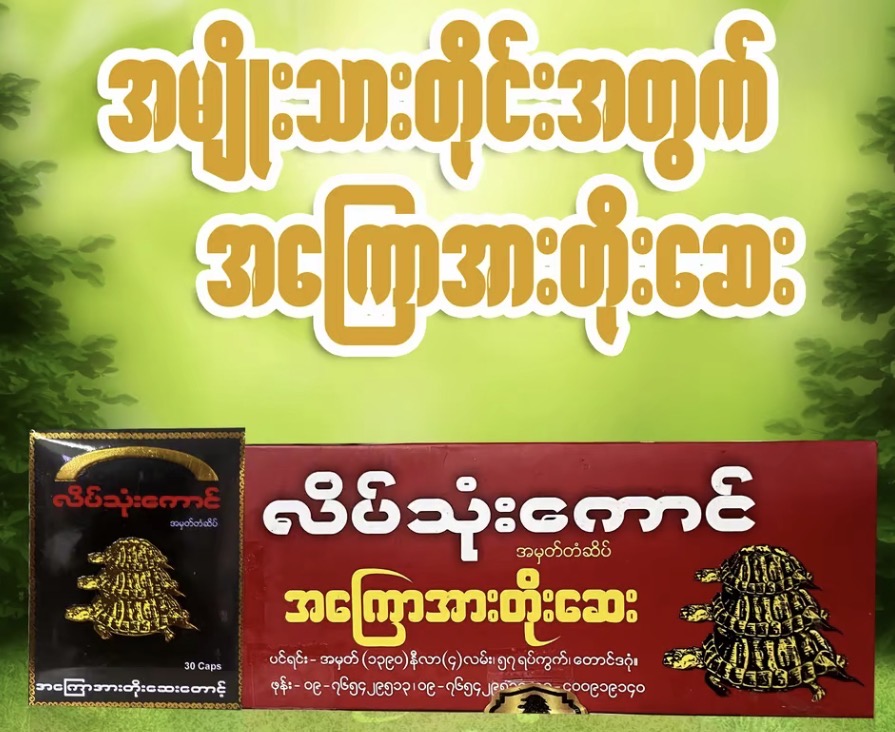 လိပ်သုံးကောင် (အထုပ် ၅ထုပ်) *Fresh Date 2028 *တိုင်းရင်းဆေးလိုင်စင်အမှတ် TMR-014607 (0228) *ကျားခွန်အား အမျိုးသားအားတိုးဆေးတော်