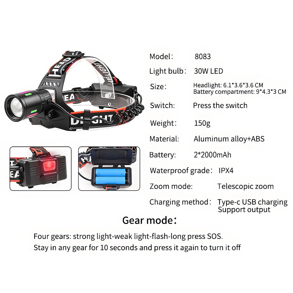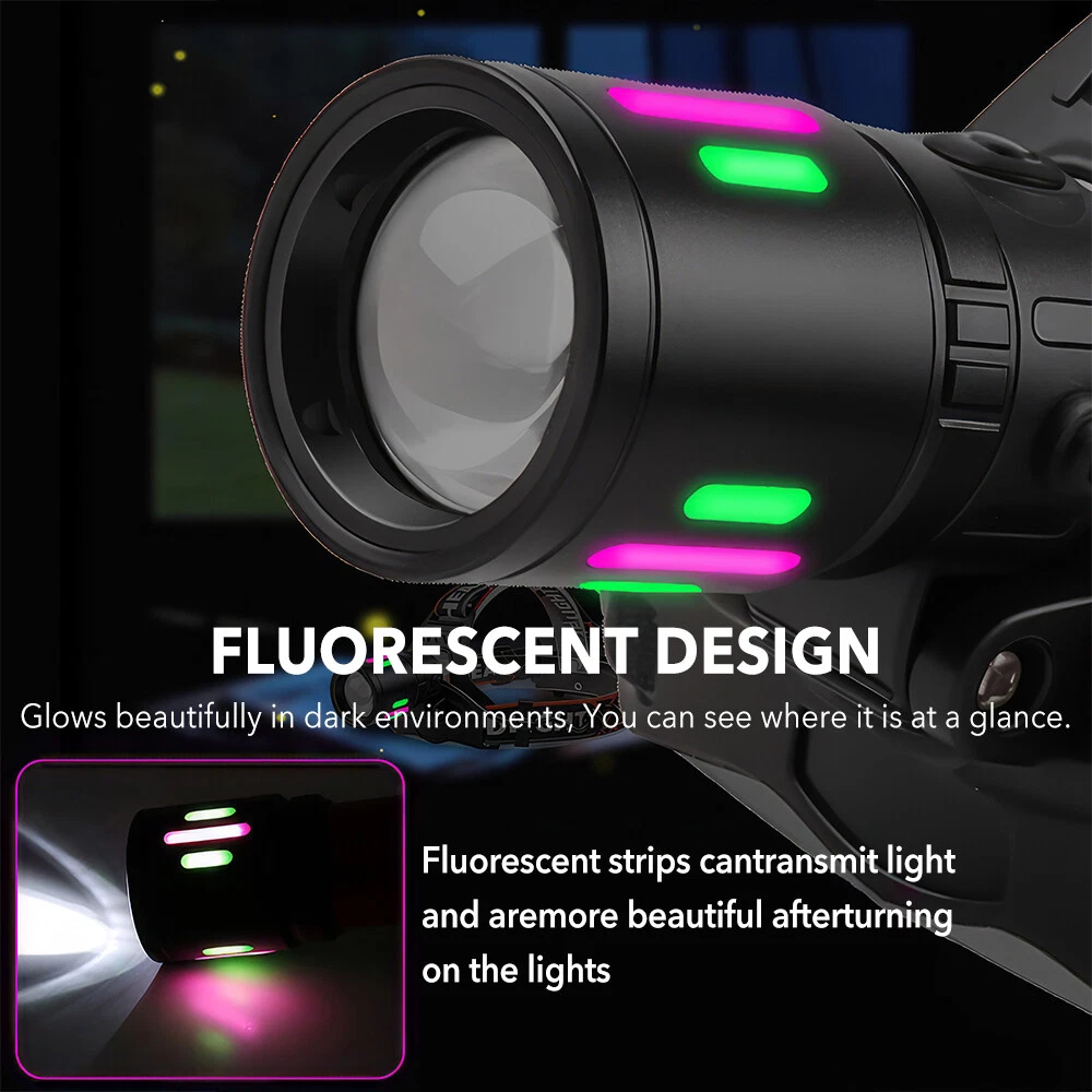 This is an extremely light headlamp. Although the lamp head is small, it increases the ability to focus light, and the floodlight ability does not decrease. It is the biggest upgrade in 2024! The adjustable headband can perfectly fit your head shape, making it more convenient for you during activities or work. This white laser wick headlamp has ultra-high brightness, with a brightness output of 1,000,000 lumens. It can focus light up to 3,000 meters away. The fluorescent lamp of the lamp head will take effect after using the extension zoom function, which can increase the brightness when used at night. A single 18650 battery can also be used, and the battery capacity ensures that you can use it for 12 hours. Made of the latest aviation aluminum alloy material, 3-meter drop-proof, IPX6 waterproof function allows the headlight to be used in rainy days, suitable for night fishing, night work, field work, patrol, rescue, emergency and other outdoor activity enthusiasts.