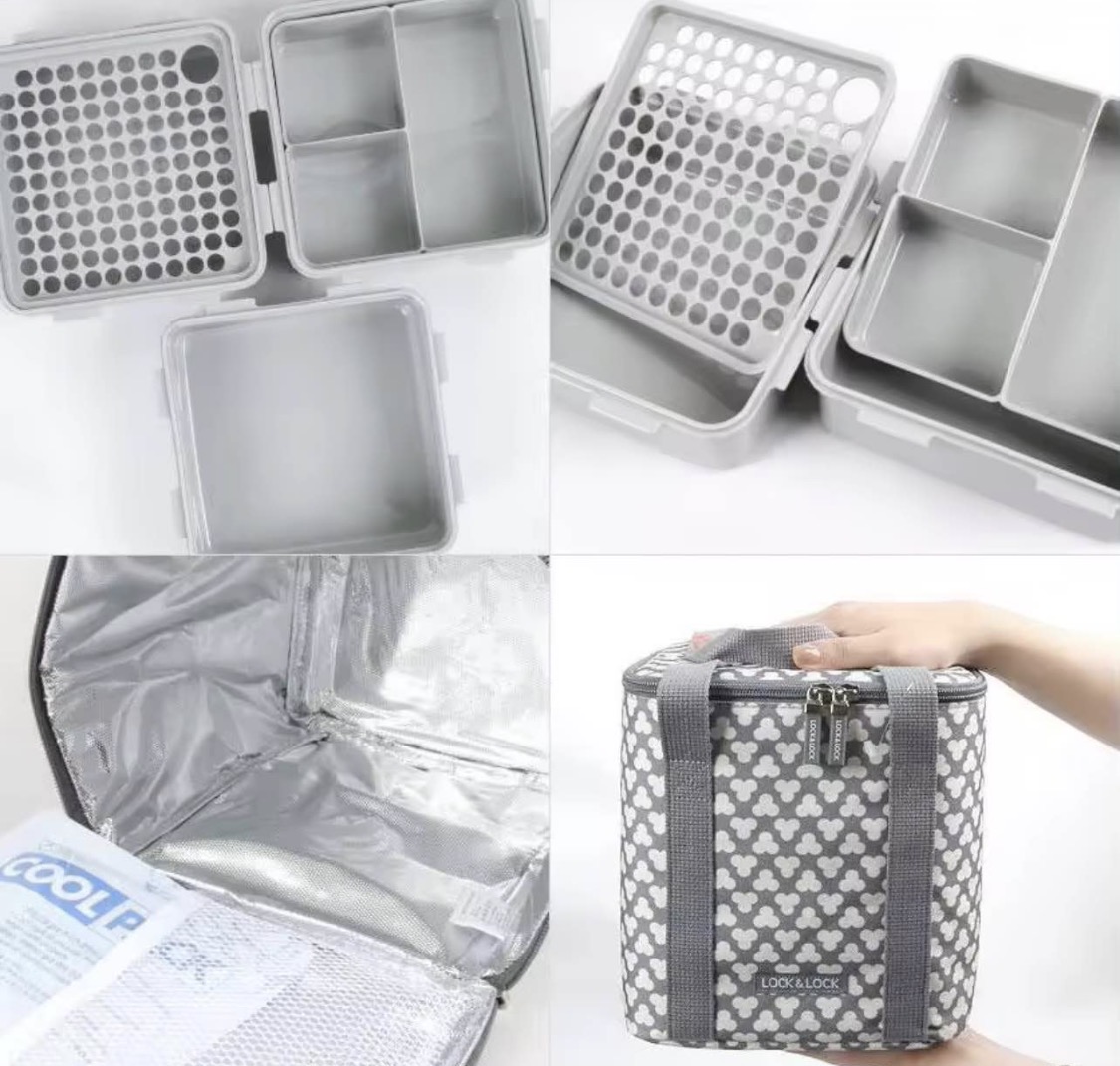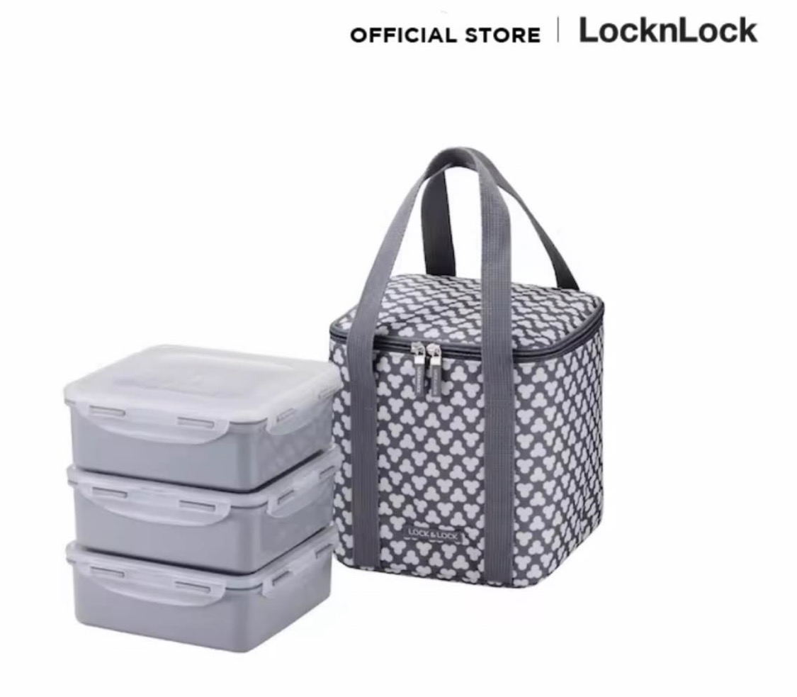 LocknLock Clover 3-Tier Lunch Box ၃ ဘူးပါ leak proof ထမင်းဘူးနဲ့အိတ်ဆက် *Super safe, BPA free, food grade