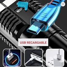 Taschenlampe mit Lade- und Ladeanzeige über USB für einfache und Kontrolle des Akkustatus.
