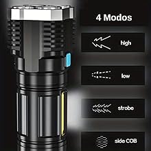 Leistungsstarkes Licht mit hoher Reichweite - Mittleres Licht - Stroboskop - COB-Modus zum Lesen