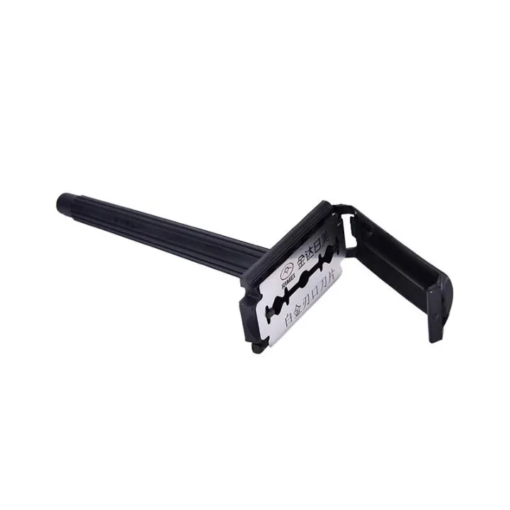 Men Black Plastic Handle Manual Shaver Razor + Double Side Blade