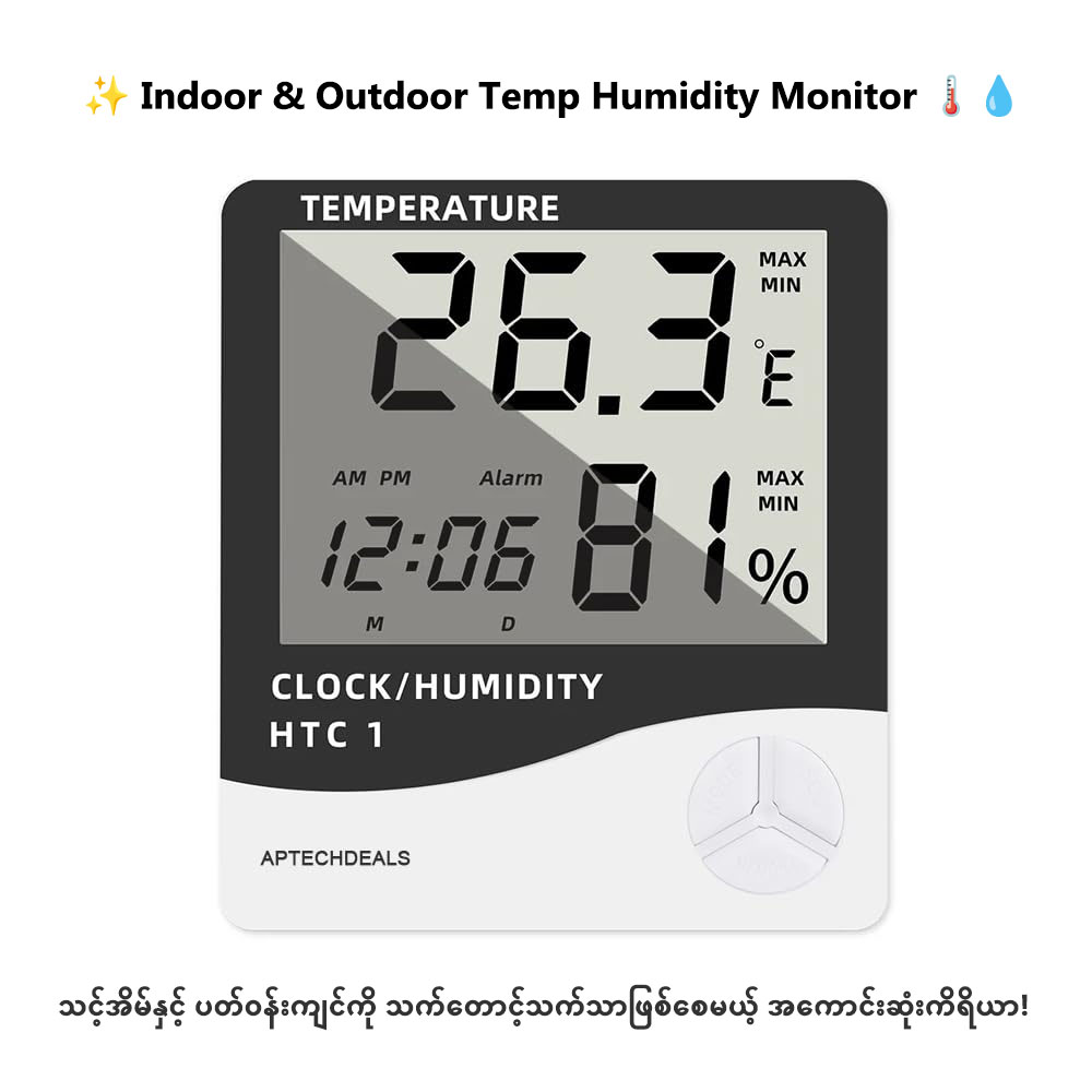 ✨ Indoor & Outdoor Temp Humidity Monitor - သင့်အိမ်နှင့် ပတ်ဝန်းကျင်ကို သက်တောင့်သက်သာဖြစ်စေမယ့် အကောင်းဆုံးကိရိယာ! 🌡️💧