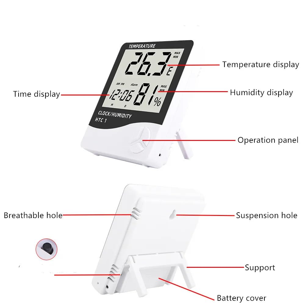 Temperature Humidity meter HTC Digital LCD Electronic Alarm Clock Thermometer Hygrometer Weather Station Indoor Room Table Clocks