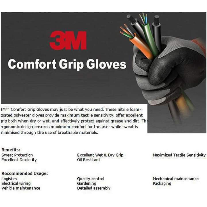 Original 3M Comfort Grip Work Gloves Safety Gardening Mechanic Construction Work Gloves (Packing: 2pcs=1Pair) • Available Size: S/M/L/XL (To Choose) • Available Colour as Shown • Direct Ship from Overseas Official Seller