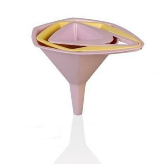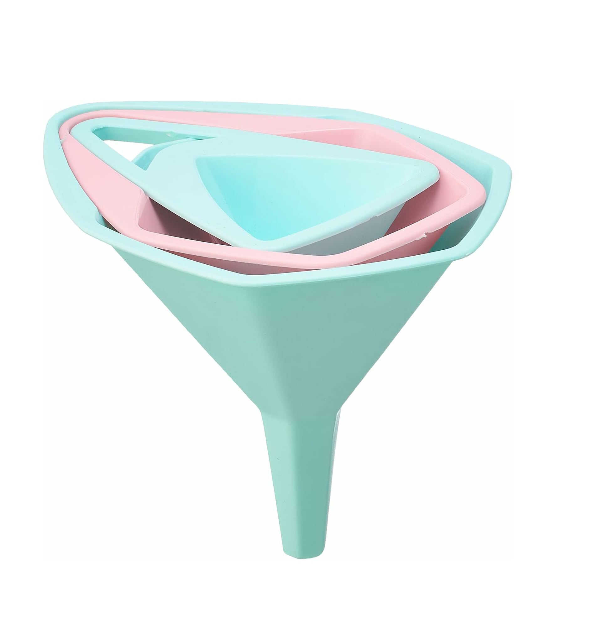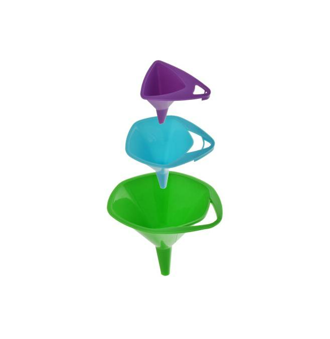 Funnels nest together for compact storage and dishwasher safe for easy cleanup