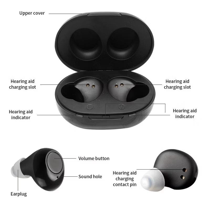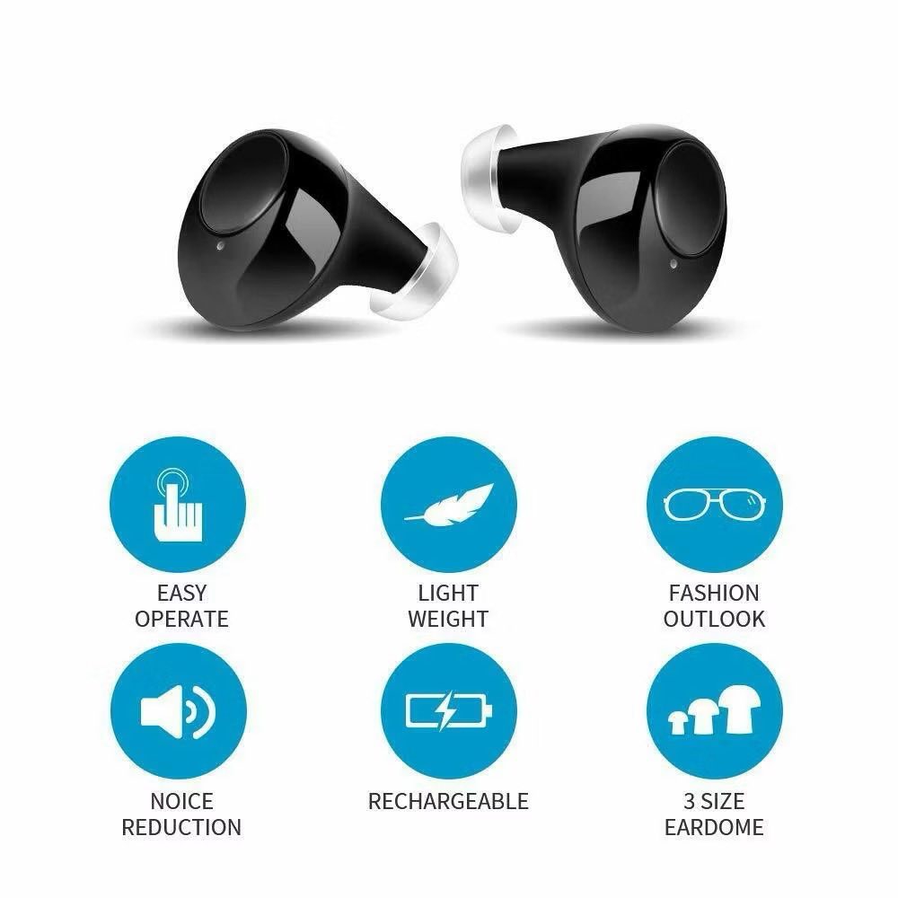 (Preorder ) (1 Pair) Mini Rechargeable Hearing Aid Invisible Digital Audiphone CIC Sound Voice Amplifier Enhancer(Black))