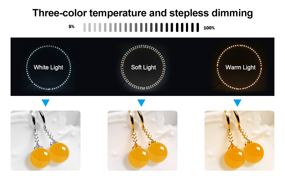 အလင်းညှိနိုင်မှု 1%-100% ဖြစ်ပြီး၊ Jewelries, Gadgets, Handmade Items စသည်ဖြင့် အသေးစားပစ္စည်းများအတွက် အထူးသင့်လျော်ပါတယ်။