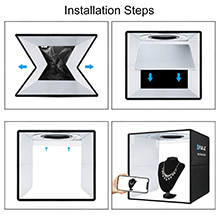 Very easy to install and store the photography box.With particular folding design, the whole assembly of our light box ONLY needs 10 seconds.No bracket. No screws. No complicated lighting layout. Follow our simple installation guide to setup the mini Shဝotingtent in seconds, making photography becoming simpler and easier now.