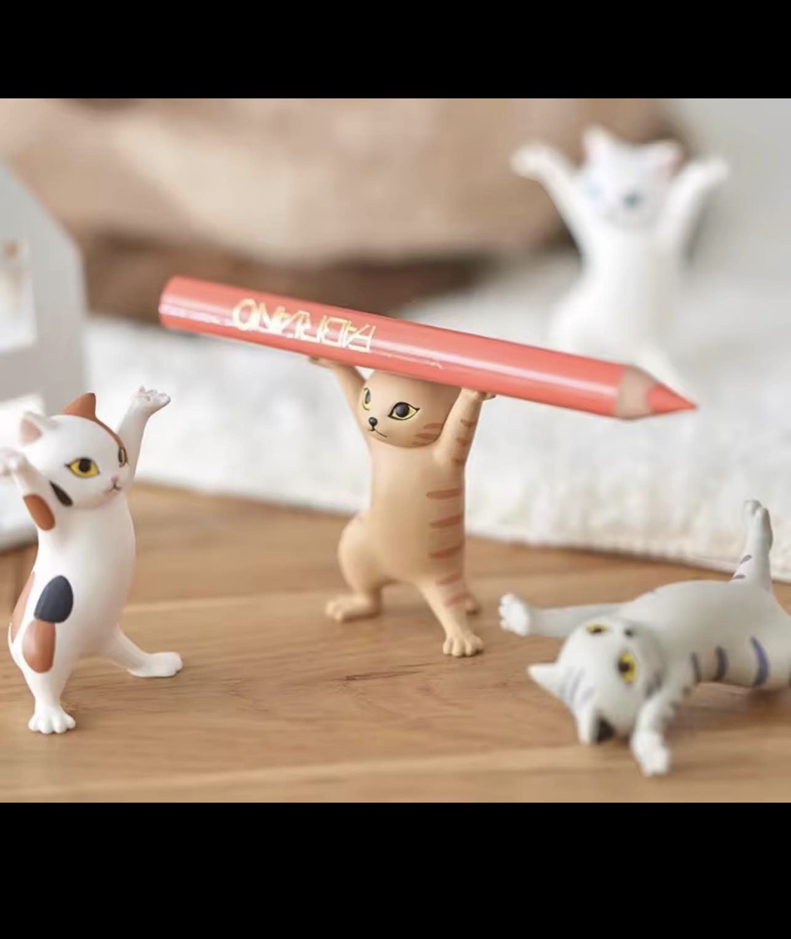 Random Colors 🐱Dancing cat figure🐱cat model holding things, cat hold a pen, toys, carry small things, cute & fun, PVC plastic *1 piece
