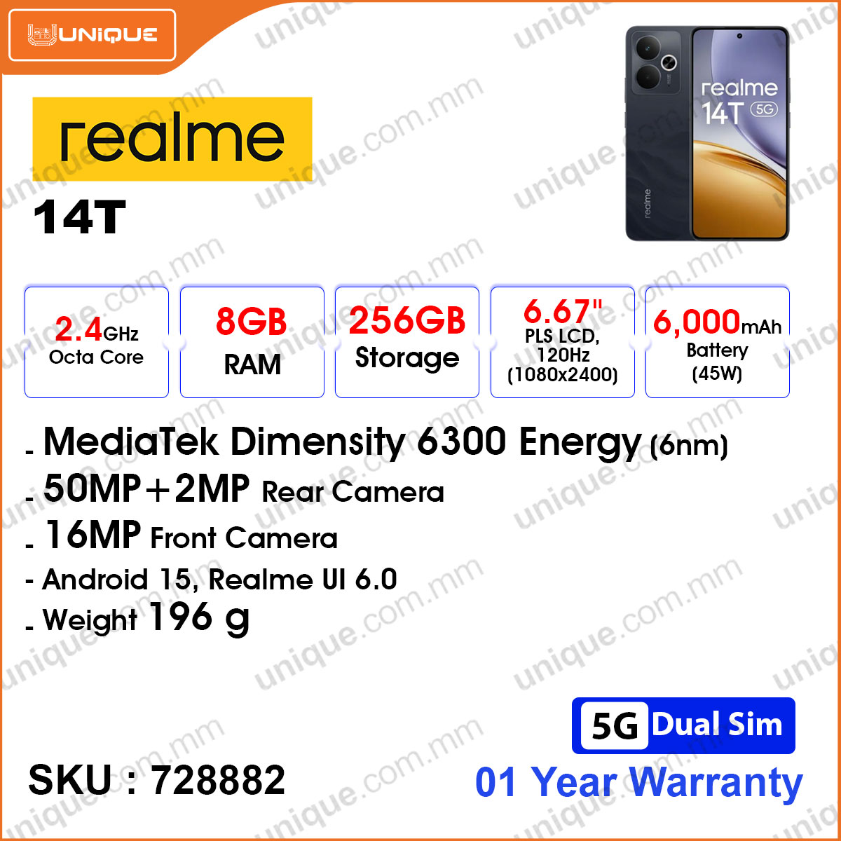 realme 14T 5G 8GB, 256GB Obsidian Black