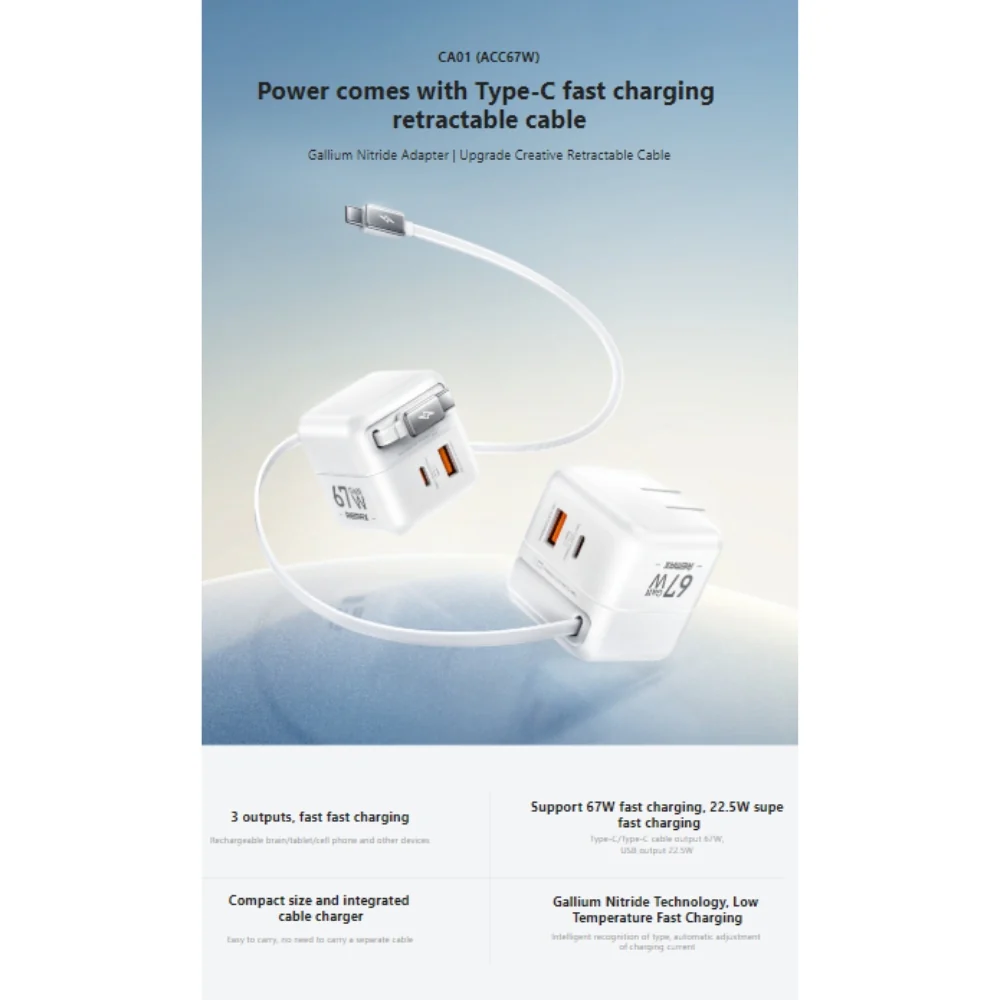 REMAX - CA01 ACC67W Power Self-Contained Retractable Type-C Cable Gallium Nitride Gan Charger