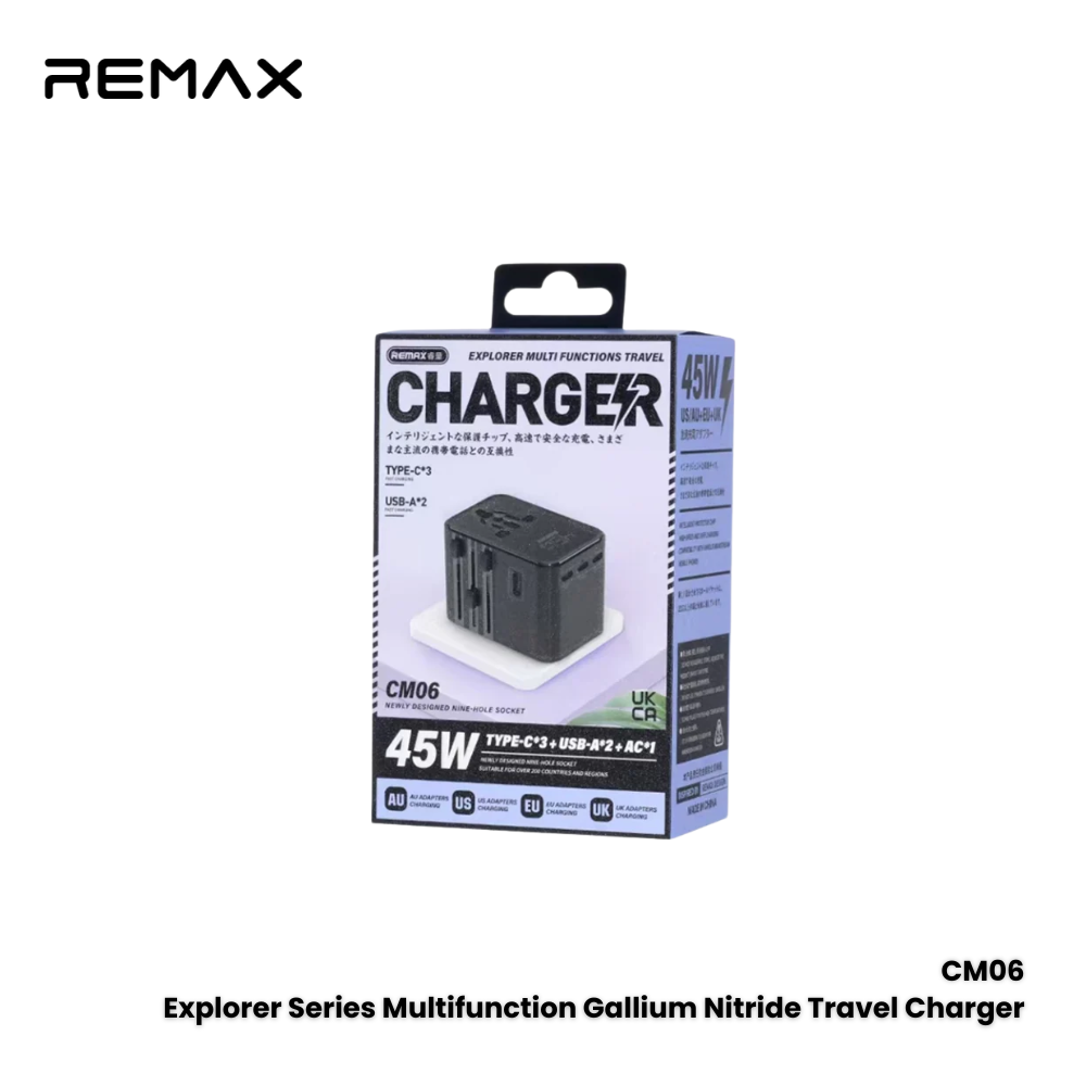REMAX - CM06 Explorer 45W Multifunctional Gallium Nitride Travel Charger - Black