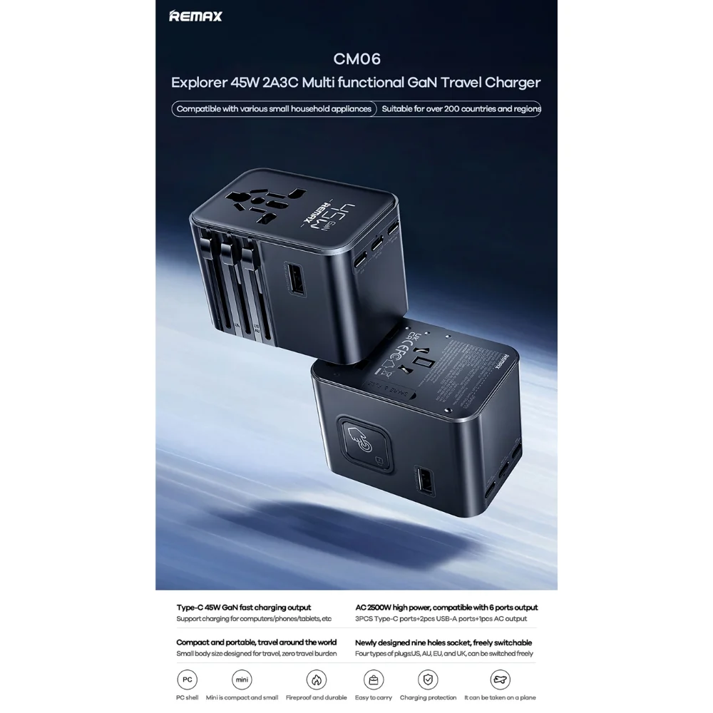 REMAX - CM06 Explorer 45W MultiFunctional Gallium Nitride Travel Charger