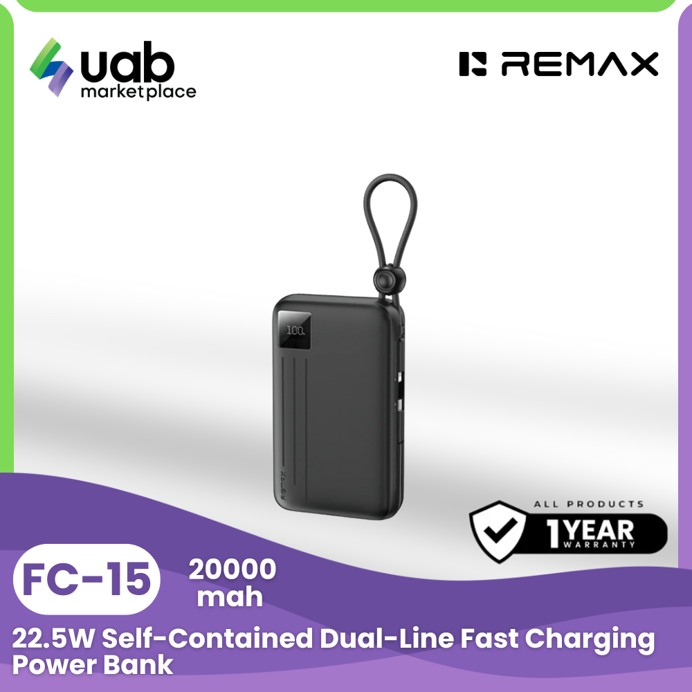 REMAX - FC-15 20000mAh 22.5W Self-Contained Dual-Line Fast Charging Power Bank - Black