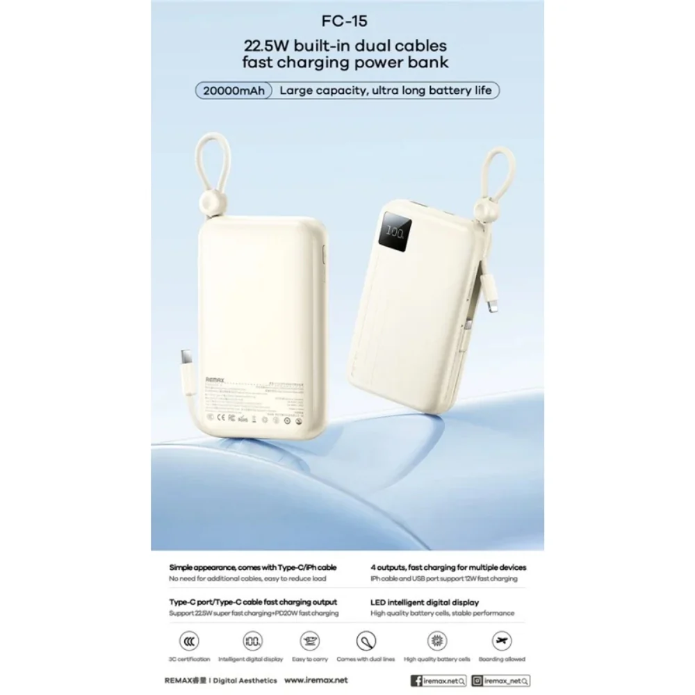 REMAX - FC-15 20000mAh 22.5W Self-Contained Dual-Line Fast Charging Power Bank