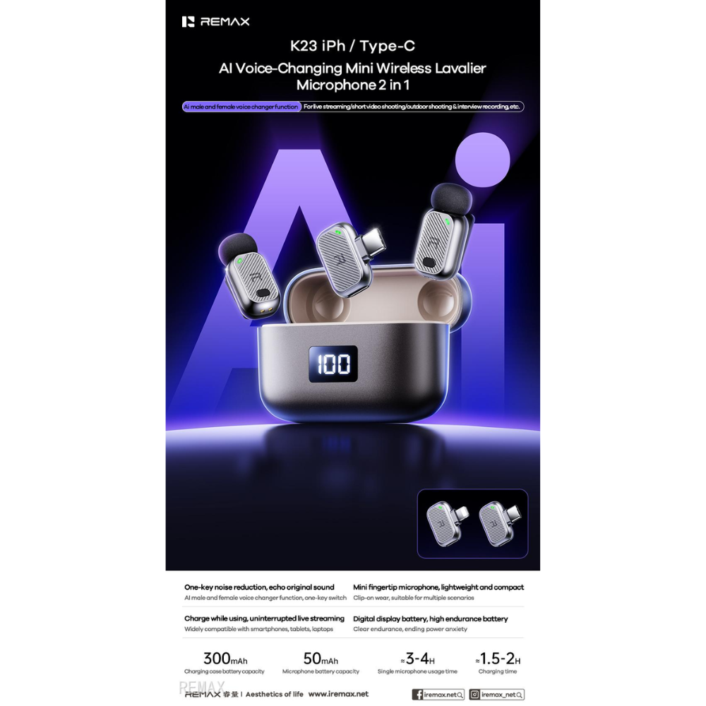 REMAX - K23 Type-C AI Variable Voice Mini Wireless Lavalier Microphone