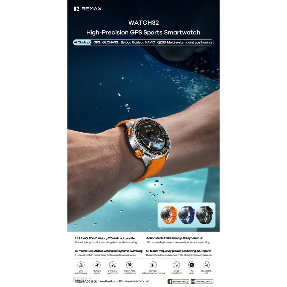 REMAX - Watch 32 Sporty GPS high-precision Positioning Smart Watch